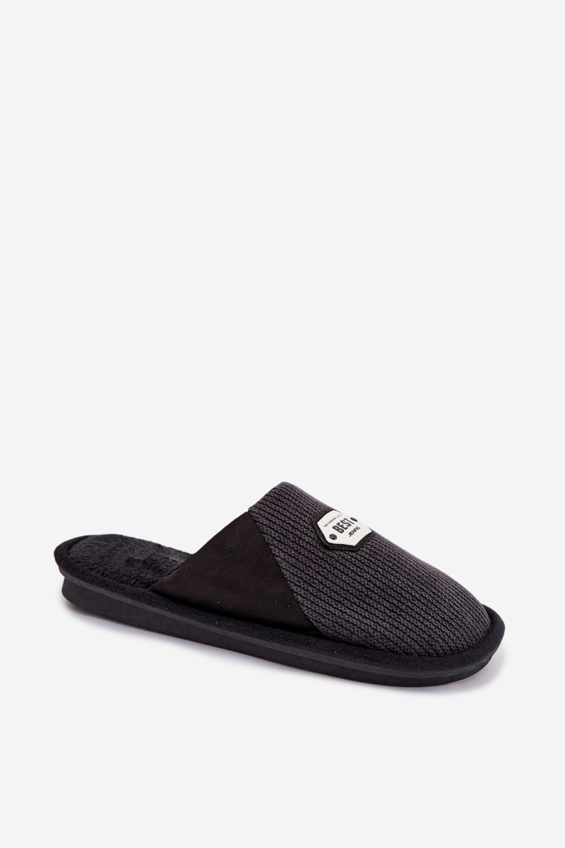 Kapcie męskie wykonane z miękkiej tkaniny to wygodny model idealny do codziennego użytku w domu. Posiadają zakryte, szerokie noski, które zapewniają swobodę i komfort. Przód zdobi naszywka. Model ten posiada miękką wkładkę z futerkiem, która gwarantuje ciepło i wygodę przy każdym kroku. Świetny wybór na domowy relaks. Przy wyborze rozmiaru prosimy sugerować się tabelą rozmiarów.
