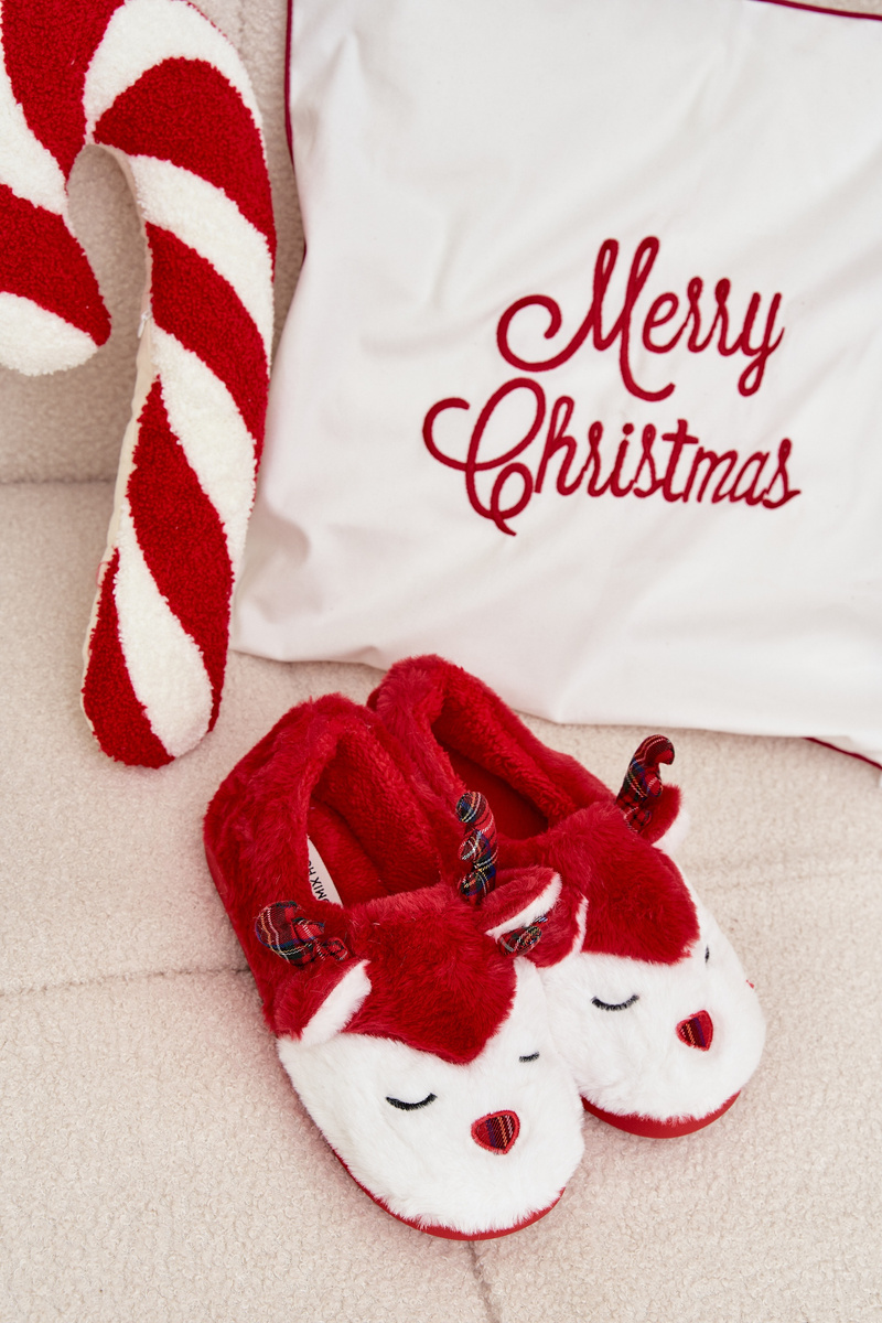 Kapcie Świąteczne Damskie Z Motywem Renifera Futrzane Czerwone Orsella