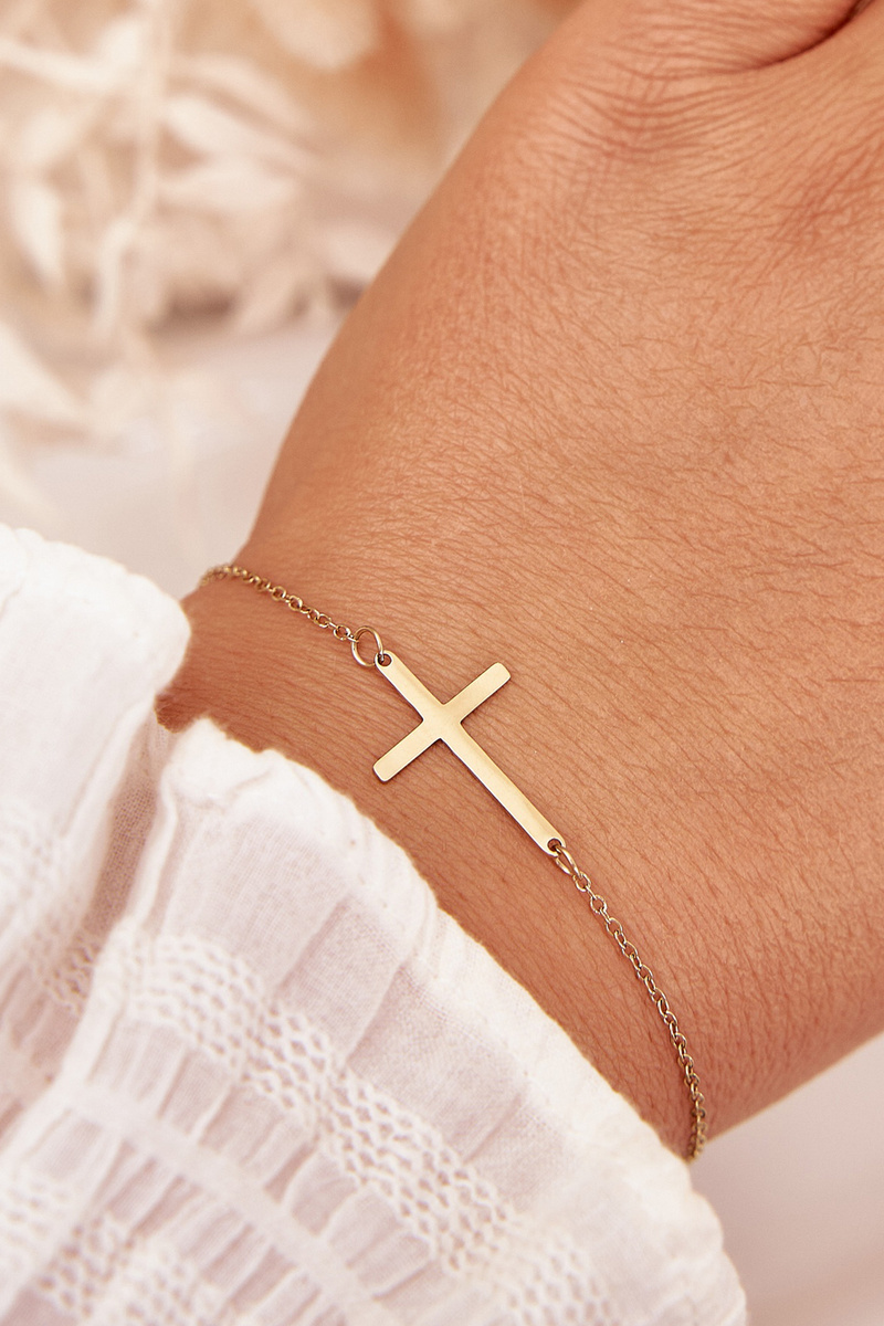 Bransoletka Z Krzyżykiem Stal Chirurgiczna Złota