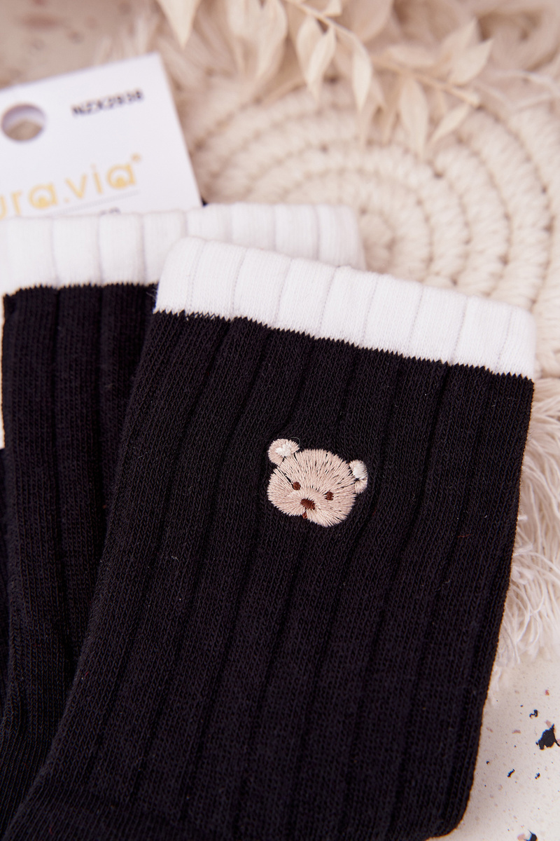 Skarpetki Damskie Bawełniane Z Małym Misiem Czarne