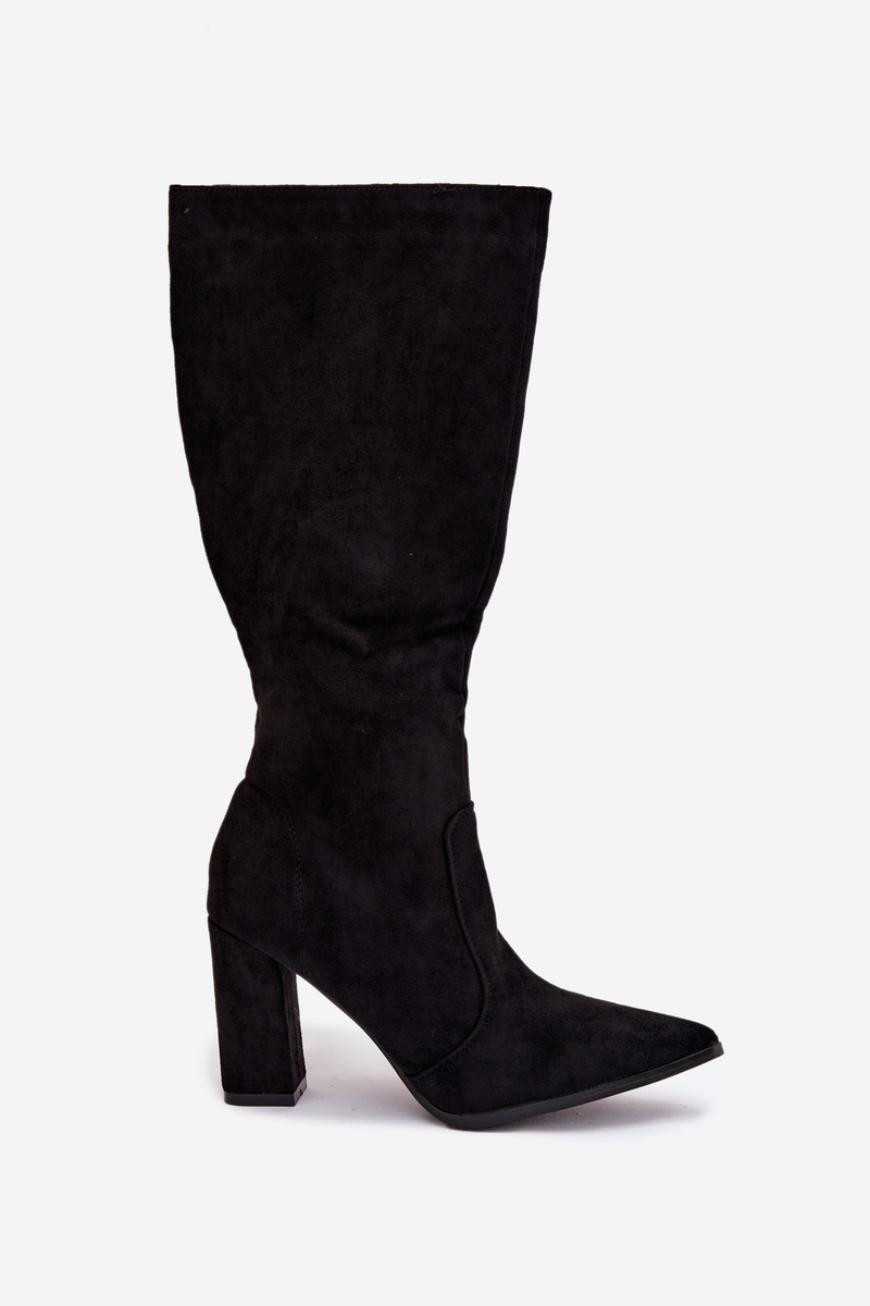 Kozaki Damskie Na Słupku Z Eko Zamszu Ocieplane Czarne Narille