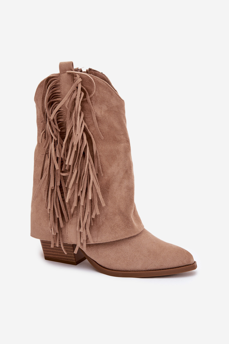 Botki Kowbojki Damskie Z Frędzlami Na Słupku Khaki Gralina