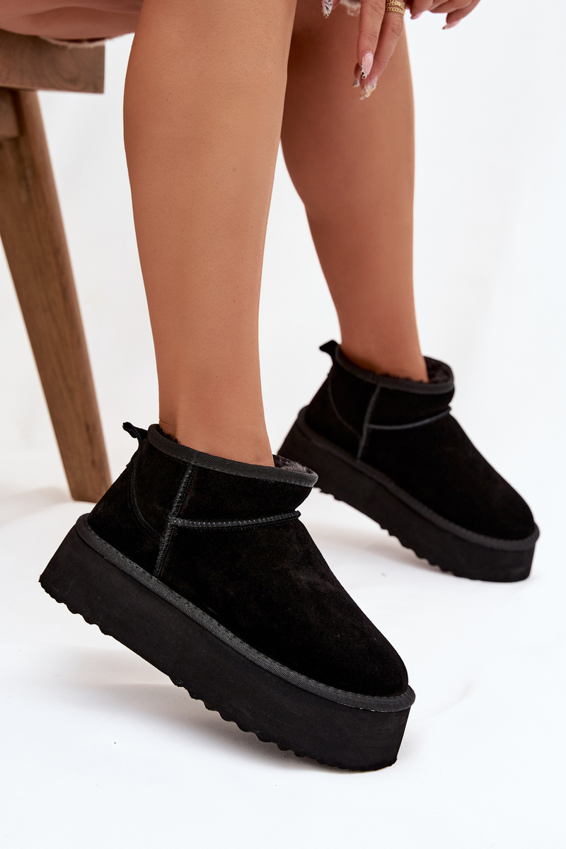 Śniegowce Damskie Z Naturalnego Zamszu Czarne Mairene