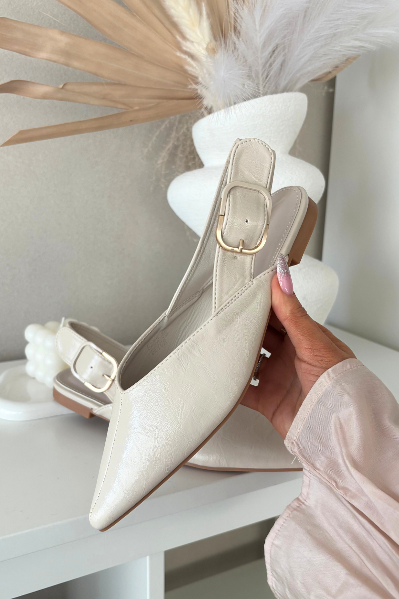 Lakierowane Baleriny Z Klamrą Beżowe Rinalle