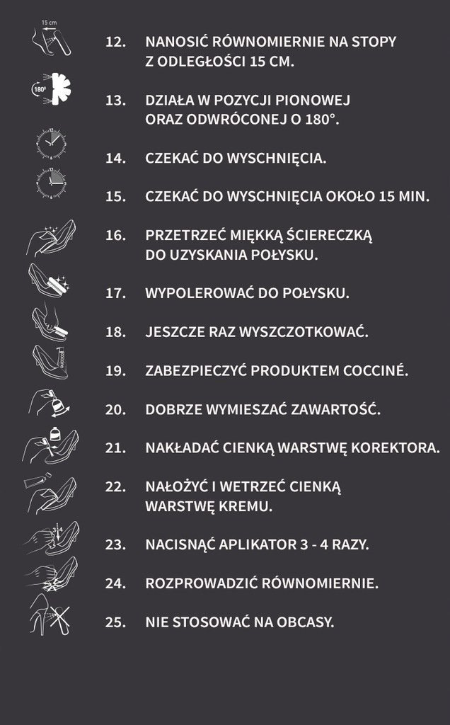 - bezpieczny dla skóry naturalnej, zamszu, nubuku i tekstyliów
