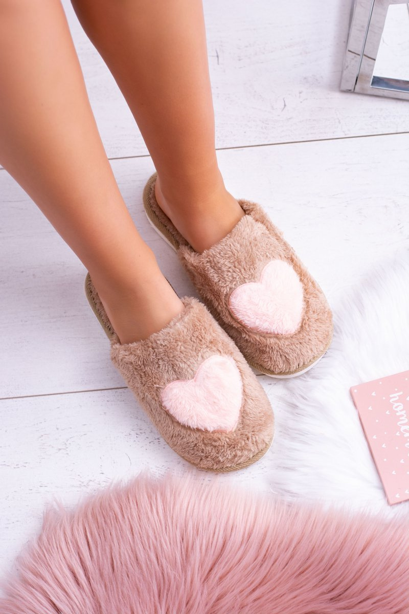 Damskie Papcie Ciepłe Beżowe Kapcie