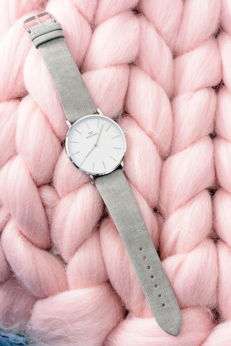 Szary Stylowy Skórzany Damski Zegarek Giorgio&Dario