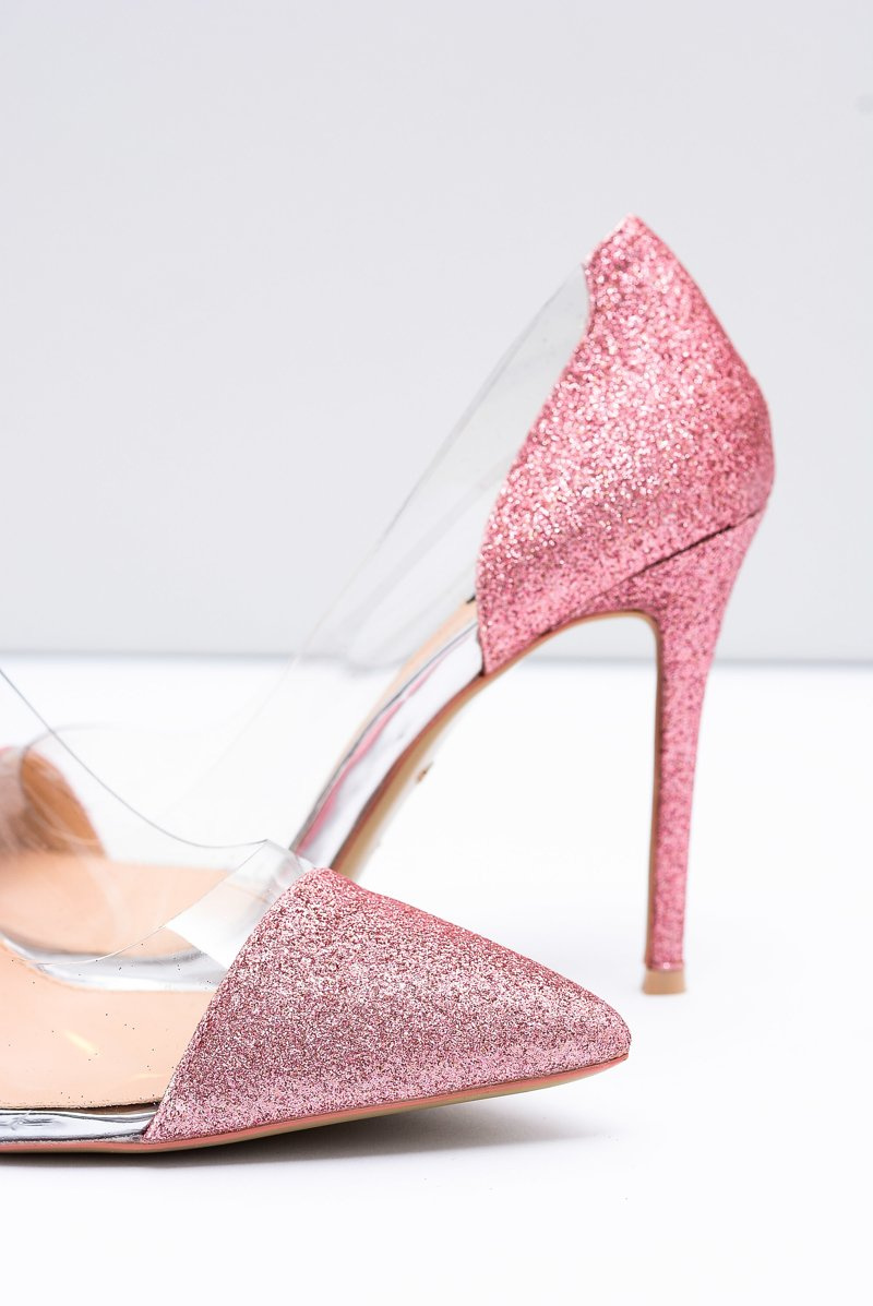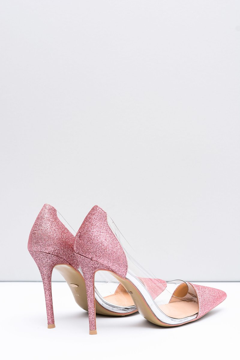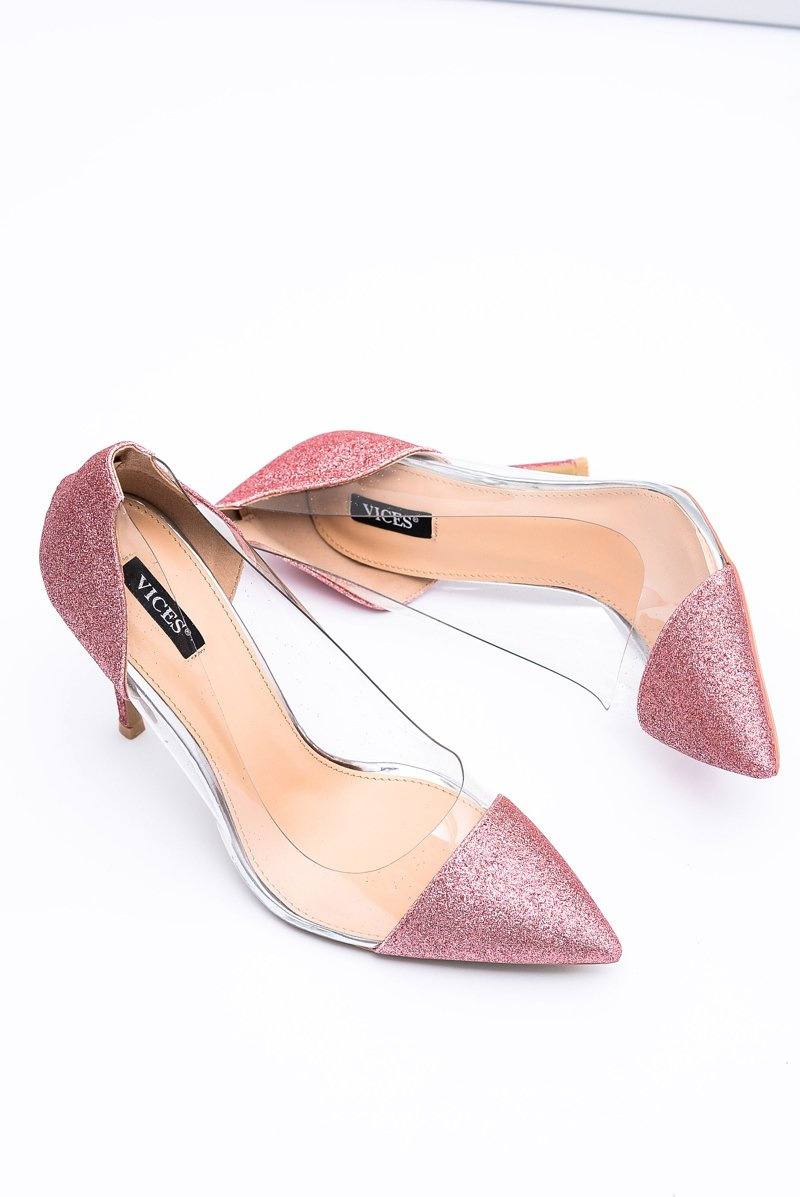 Damskie Szpilki Vices Transparentne Brokatowe Różowe Party