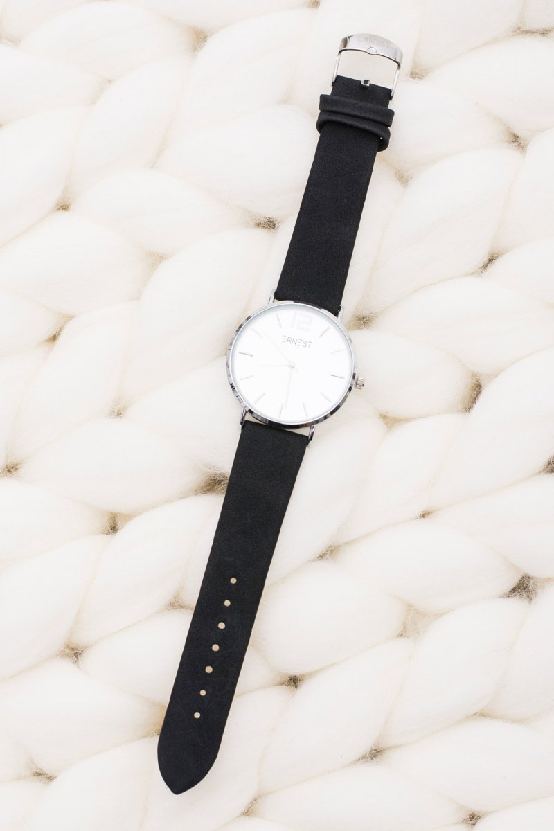 Elegancki Skórzany Czarny Damski Zegarek Ernest