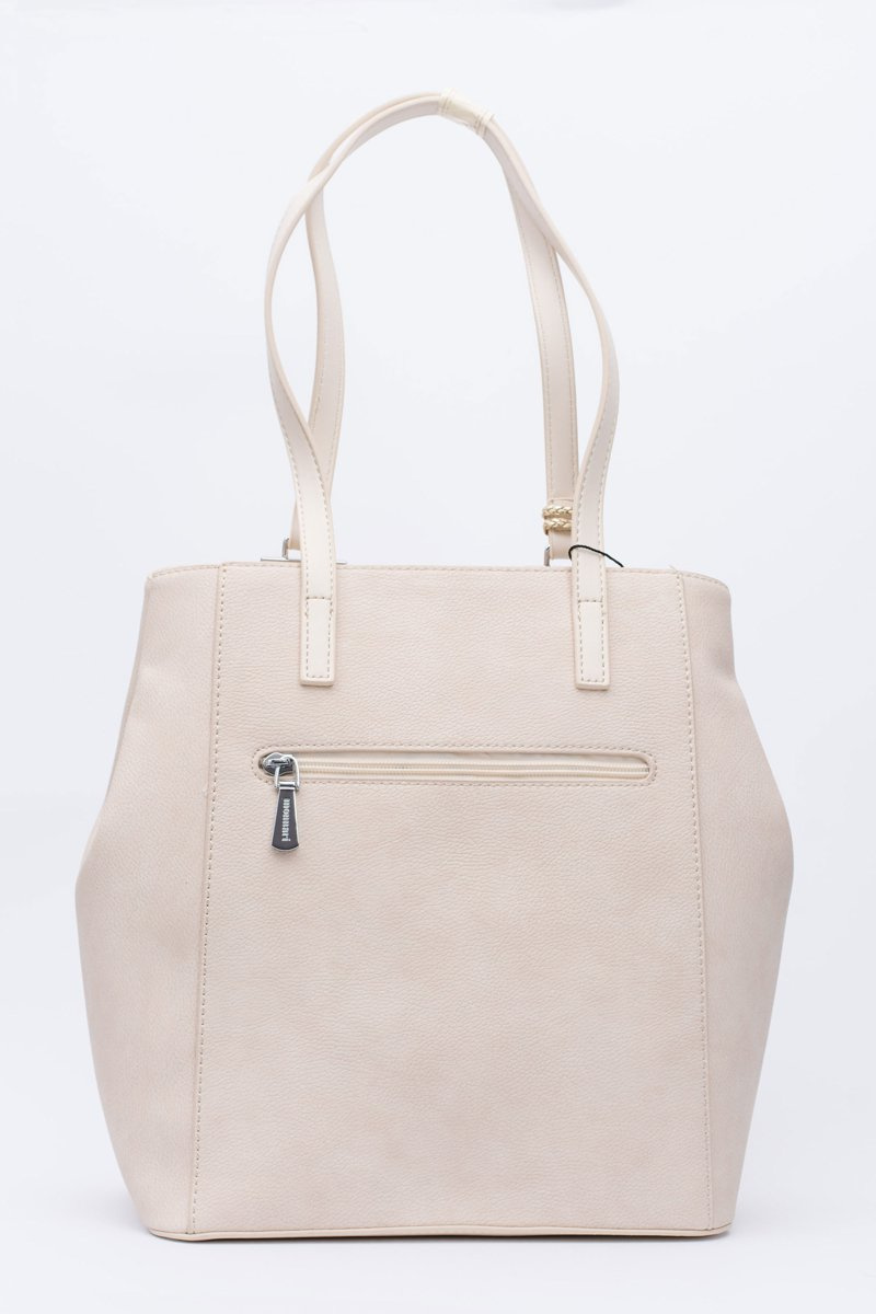 Modny shopper bag prosto od Monnari! Posiada jedną komorę wewnątrz której znajdują się trzy kieszenie w tym jedna zapinana na zamek oraz jedna zewnętrzna zapinana na zamek. Wykonana z delikatnej skóry ekologicznej. Sprawdzi się jako dodatek do wszelkich stylizacji. Rączki o długości 50cm.