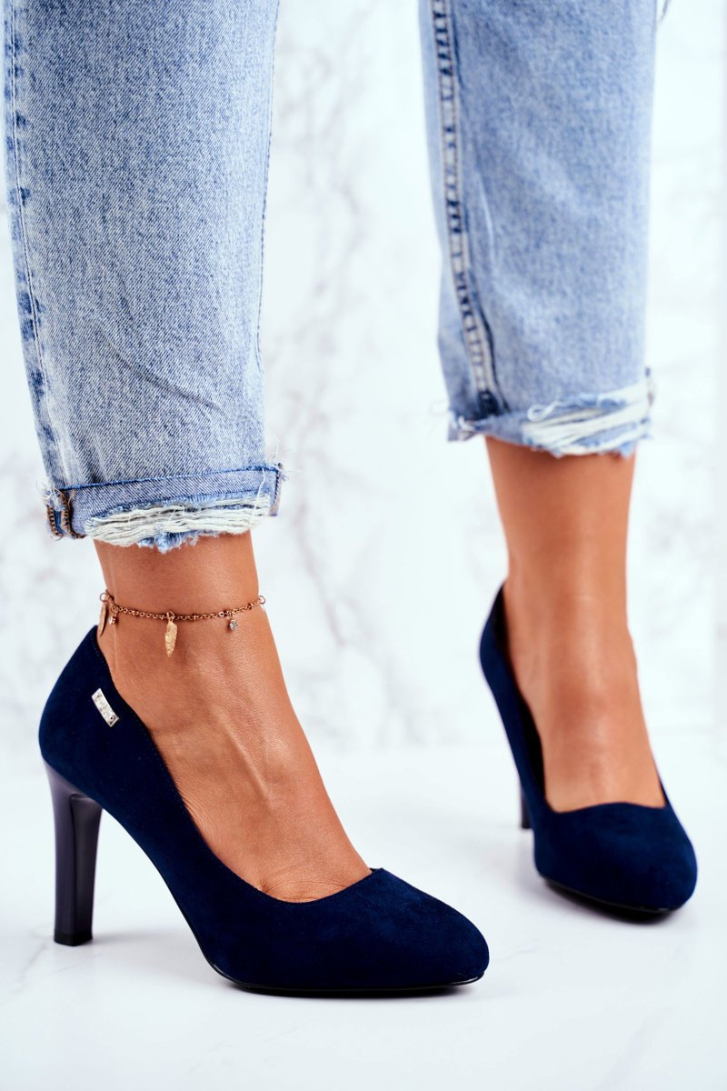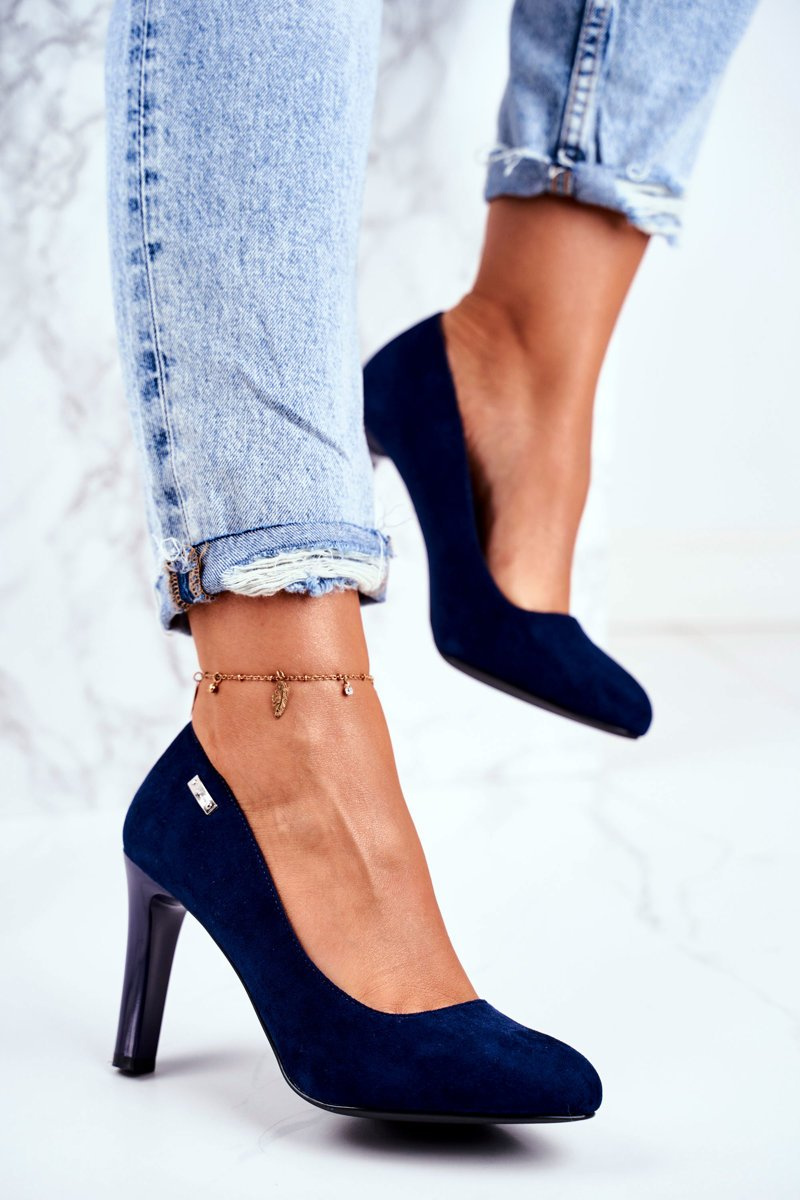 Czółenka Damskie Zamszowe Na Słupku Sergio Leone Granatowe Campbell