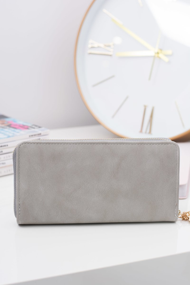 Przedstawiamy piękny portfel dla eleganckich Pań. Produkt ten charakteryzuje wyjątkowy szyk wzorowany na trendach mody. Portfele wykonane przy użyciu tylko najwyższej klasy materiałów. Staranne i piękne wykończenie portfela oddaje niesamowitą dbałość o detale oraz modowy gust. Wewnątrz znajdziemy 3 przegródki, które zapinane są na zamek przyozdobiony brelokiem ze złotym sercem oraz frędzelkami. Jedna z kieszonek zapinana jest na zameczek, która świetni sprawdzi się do przechowywania bilonu, dodatkowo po bokach znajduje się 8 przegródek na karty i dwie na większe dokumenty. Dostępne w kilku kolorach. Nie czekaj i spraw sobie ten wspaniały portfel ozdobiony pomponem oraz imitacją zamka na brzegach.