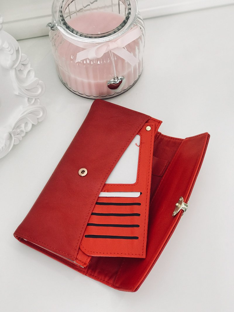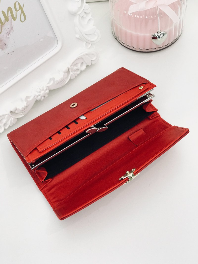 Przedstawiamy piękne portfele dla eleganckich Pań, dostępne w kilku cudownych kolorach. Produkty te charakteryzuje wyjątkowa prostota i elegancja. Wykonywane są przy użyciu najwyższej klasy materiałów. Staranne i piękne wykończenie każdego portfela oddaje niesamowitą dbałość o detale oraz modowy gust. Portfel posiada zapinanie na zatrzask. Wewnątrz znajdują się dwie kieszonki, jedna zapinana na zamek, aż 8 przegródek na karty oraz miejsce na zdjęcie.