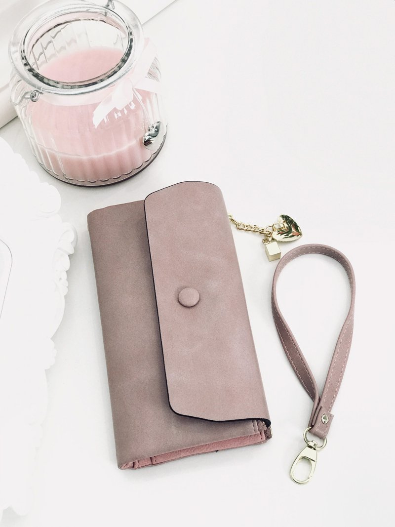 Duży Damski Portfel z Brelokiem Serduszko Pudrowy Róż