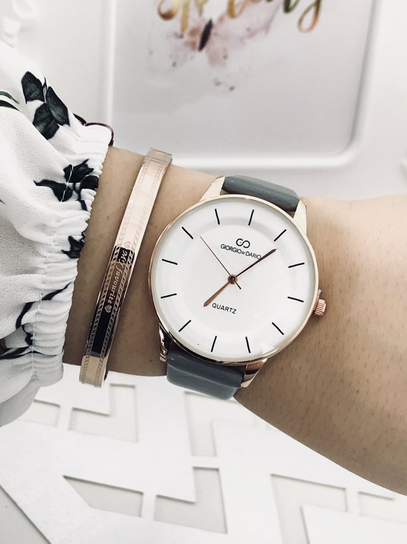 Gemini to klasyczna i elegancka linia damskich zegarków Giorgio & Dario. Zegarek posiada delikatnie wypukłe szkiełko, dzięki temu jeszcze lepiej prezentuje się na ręce a jednocześnie jest bardziej czytelny. Pasek w kolorze pudrowego różu z możliwością łatwiej regulacji, złota koperta wykonana ze stali chirurgicznej. Wysoka jakość wykonania mechanizmu i koperty