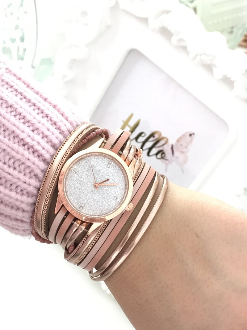 Mówią że „Diamenty to najlepsi przyjaciele kobiety” - w tym stwierdzeniu z pewnością tkwi ziarno prawdy ale my nie do końca się z nim zgadzamy. Równie gustownym dodatkiem kobiecej garderoby jest dobrze dobrany zegarek. Model Nadine marki Michael John to gratka dla Pań ceniących sobie gustowny wygląd w każdej sytuacji. Pięknie zdobiona brokatem tarcza oraz gustowny owijany pasek nadają mu ekskluzywnego wyglądu. Sięgnij po najwyższą jakość marki Michael John.