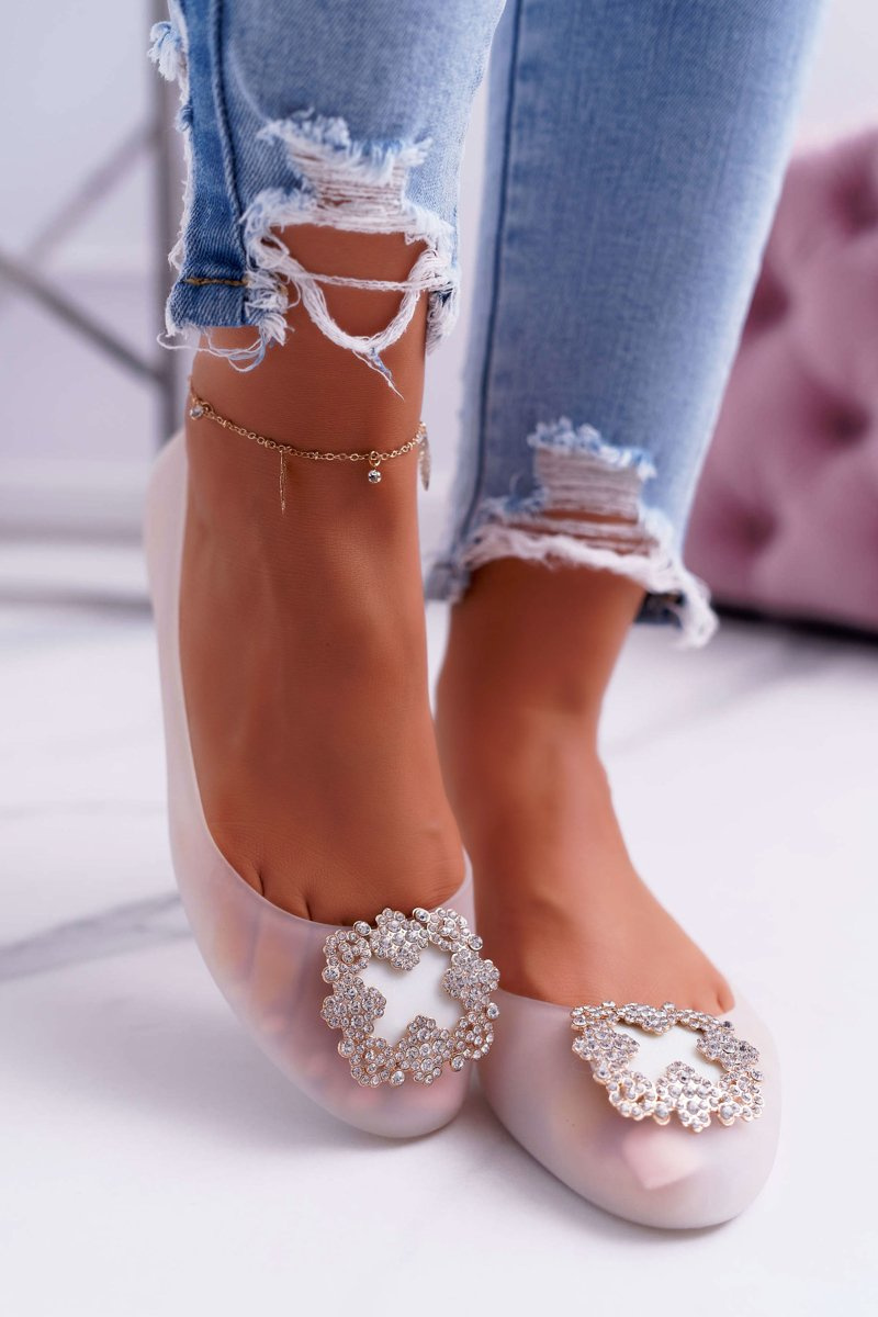 Lu Boo | Białe Gumowe Balerinki Meliski Cyrkonie Palita
