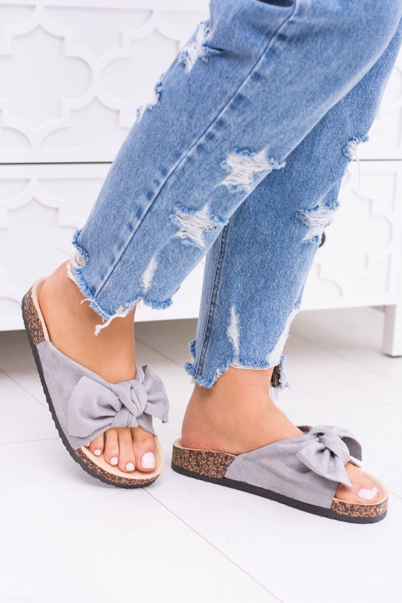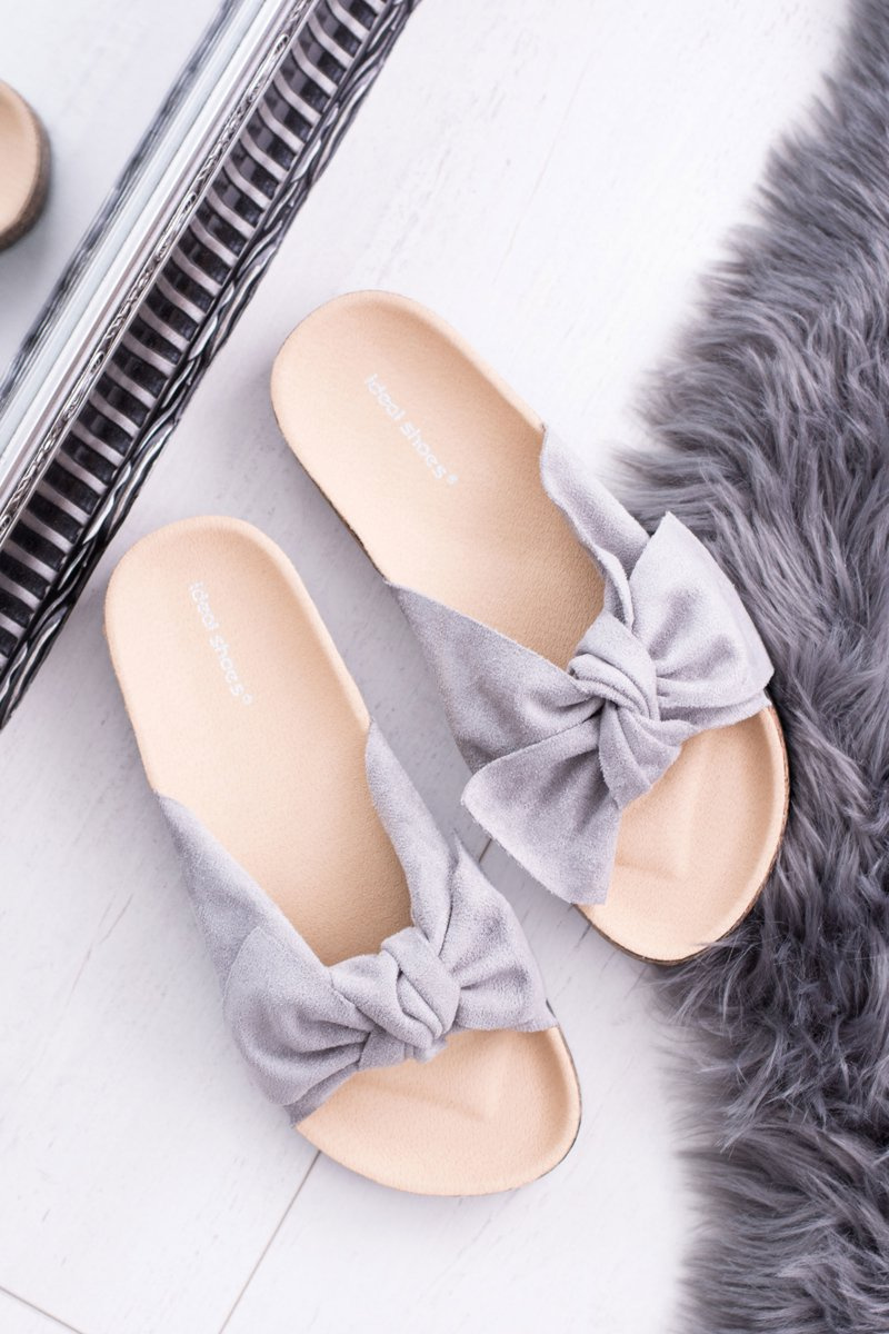 Damskie klapki idealne na lato! Zamszowy wzór wykonany w najwyższej jakości materiału! Miękka i profilowana wkładka zapewnia niesamowitą wygodę i komfort użytkowania. Klapki posiadają piękne zdobienie w postaci wywiązanej kokardy. Występują w kilku cudownych kolorach. Musisz je mieć, kup teraz w doskonałej cenie!