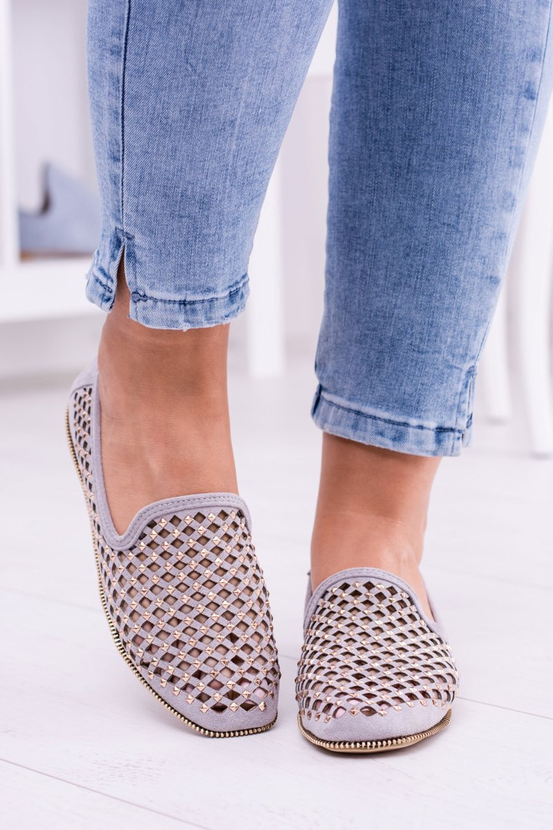 Lu Boo Szare Ażurowe Baleriny Lordsy Ćwieki Carmar