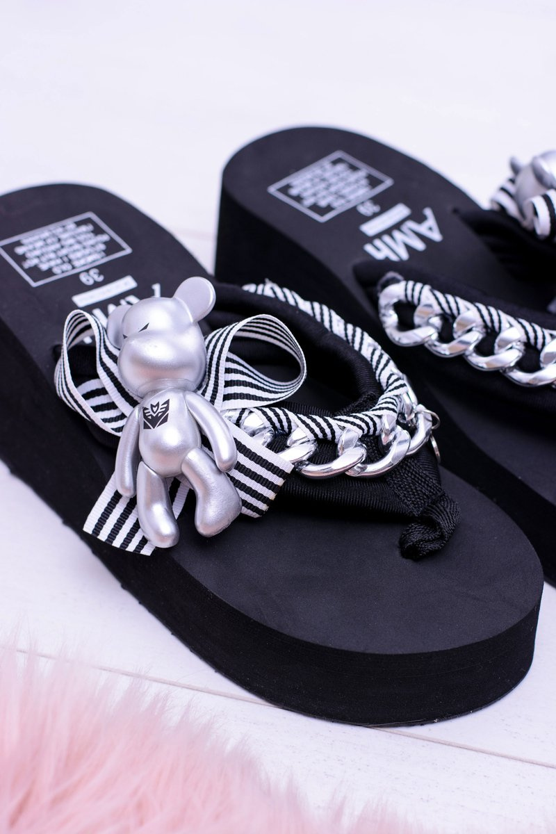 Czarne Ekstrawaganckie Klapki na Koturnie Shock