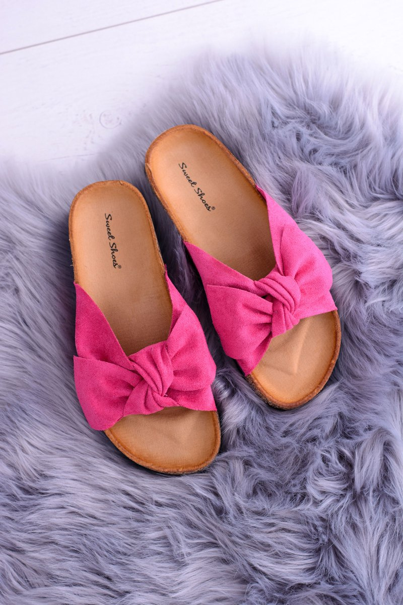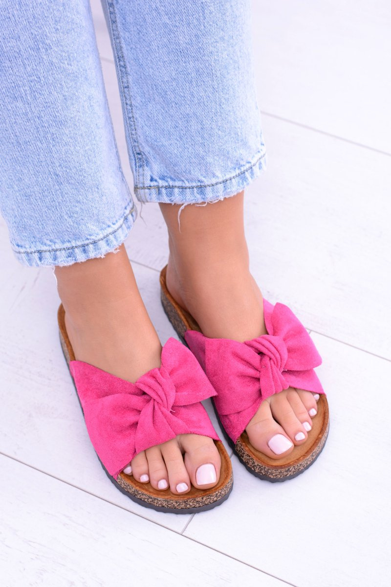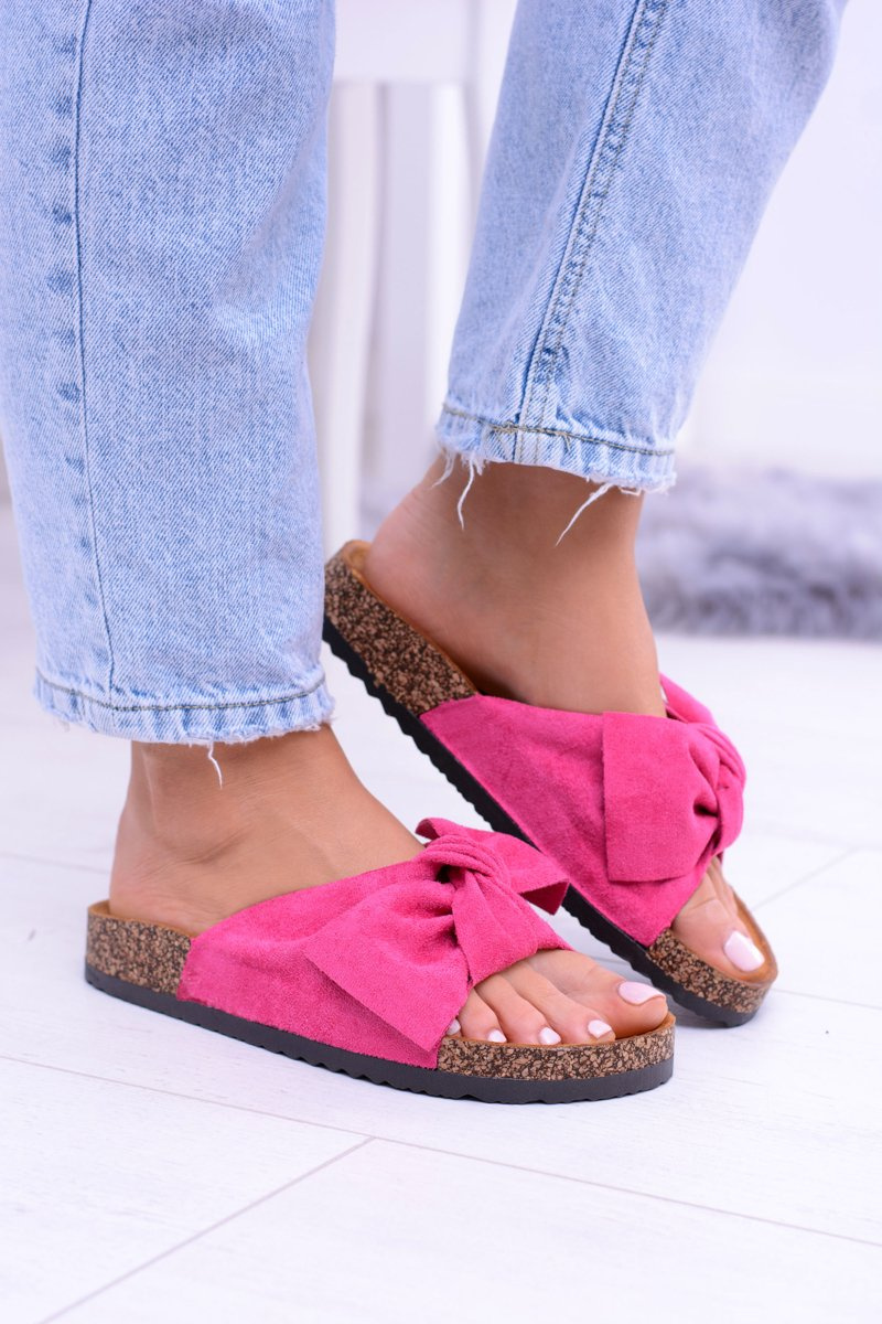 Damskie Klapki Na Korku Kokardki Wolly Fuksja