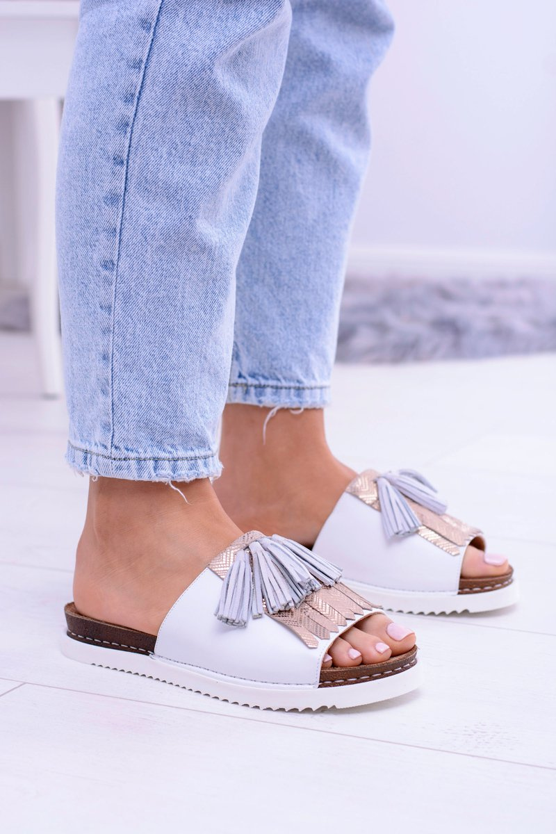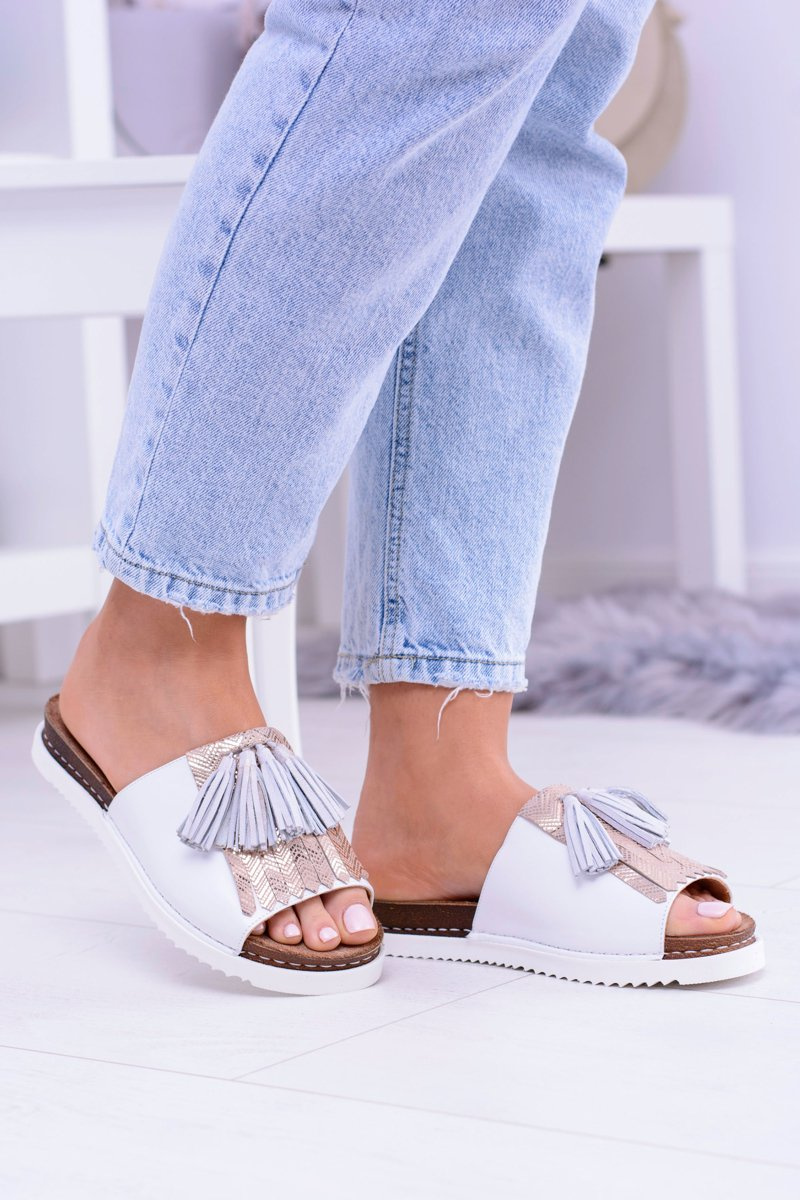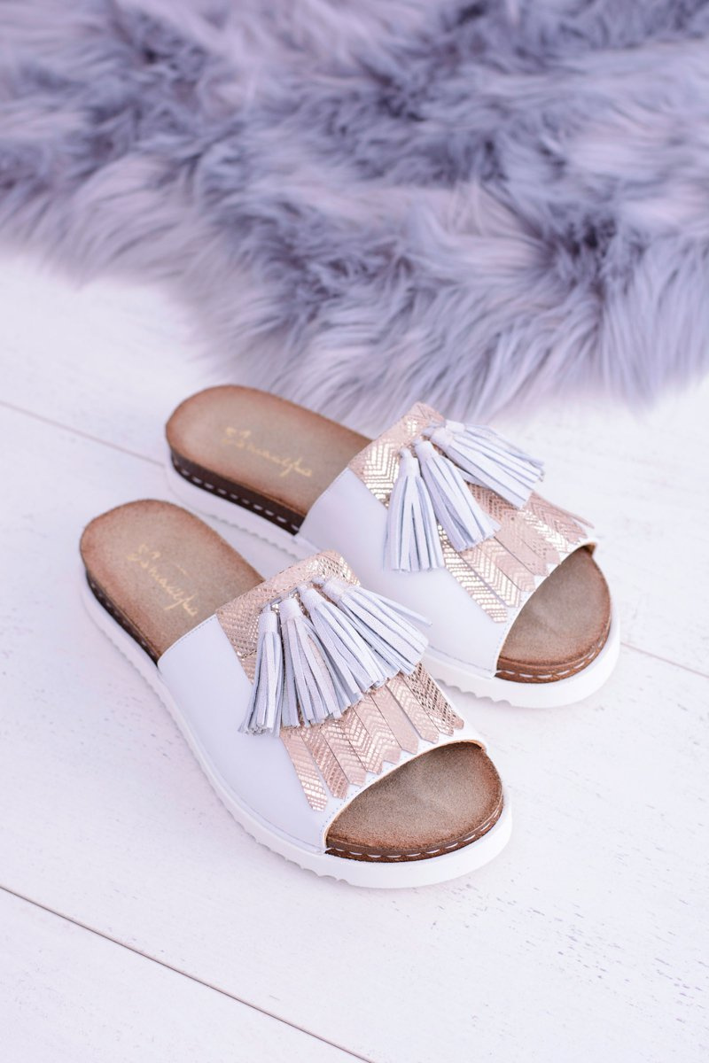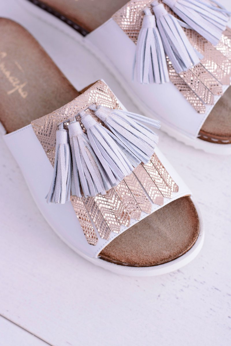 Skórzane Białe Eleganckie Klapki Maciejka Resto