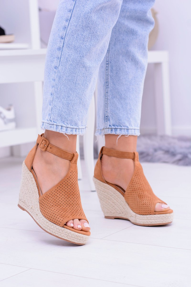 Zamszowe Espadryle Sandały Na Koturnie Camel Sunlast