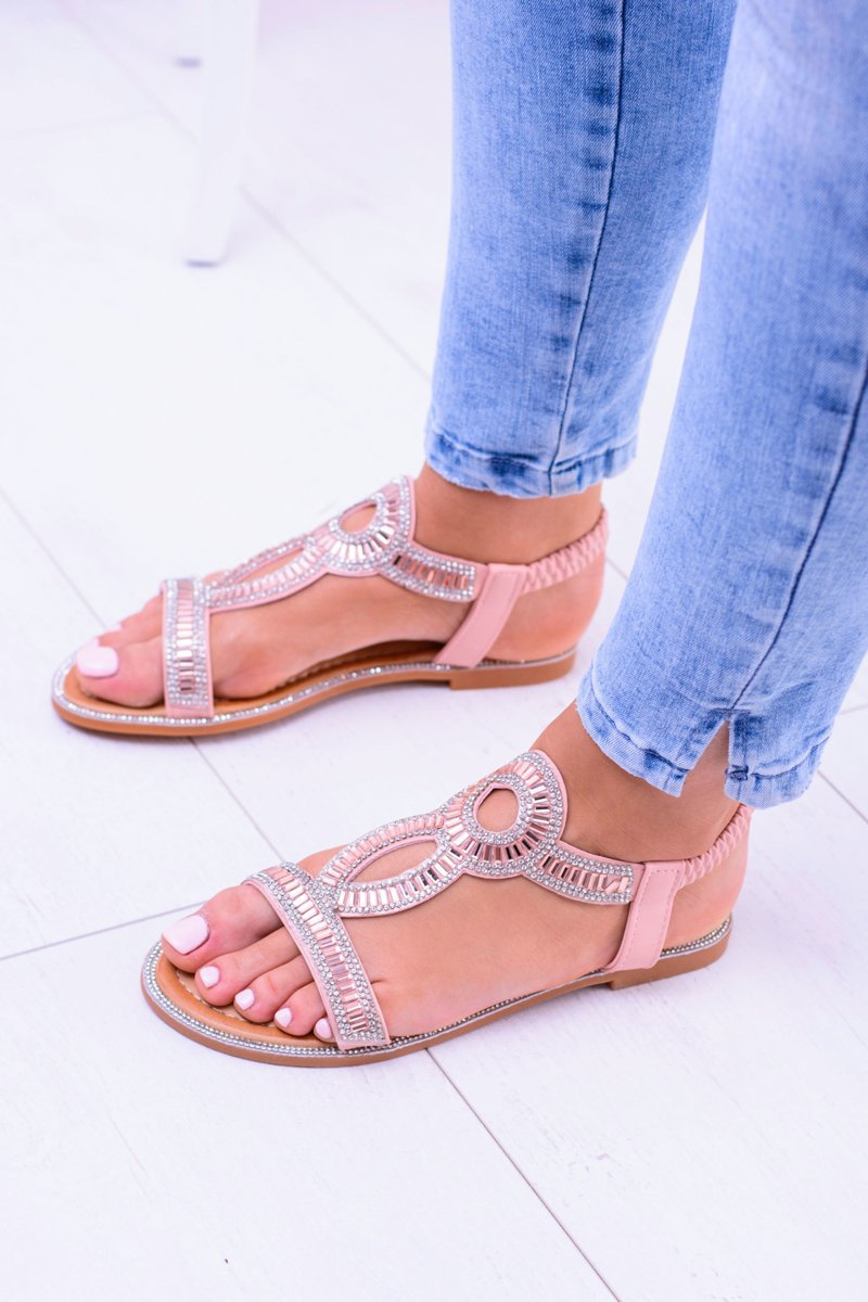 Damskie Sandałki z Cyrkoniami Rent Pudrowy Róż