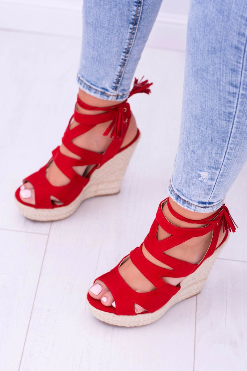 Czerwone Zamszowe Sandały Na Koturnie Nowelio