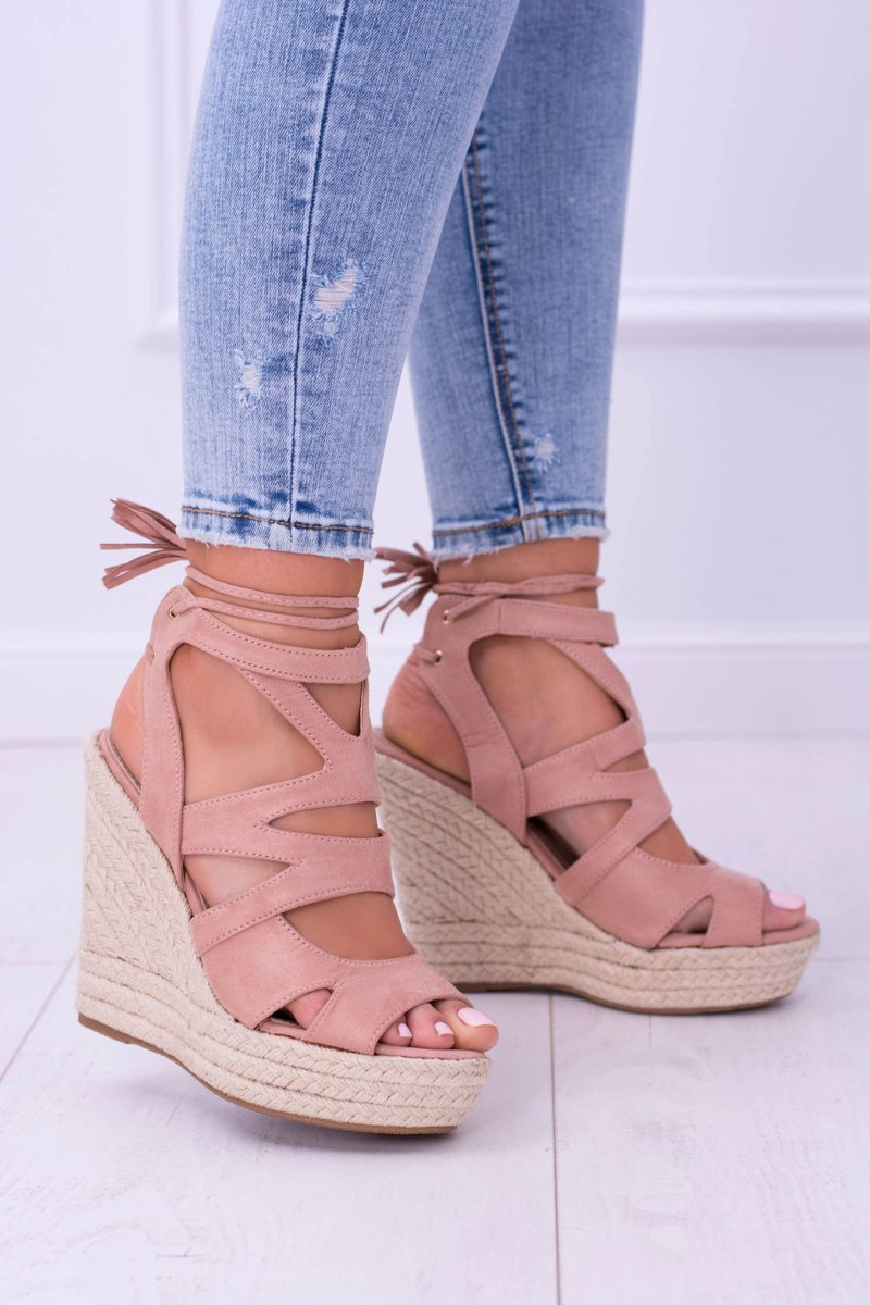 Różowe Zamszowe Sandały Na Koturnie Nowelio