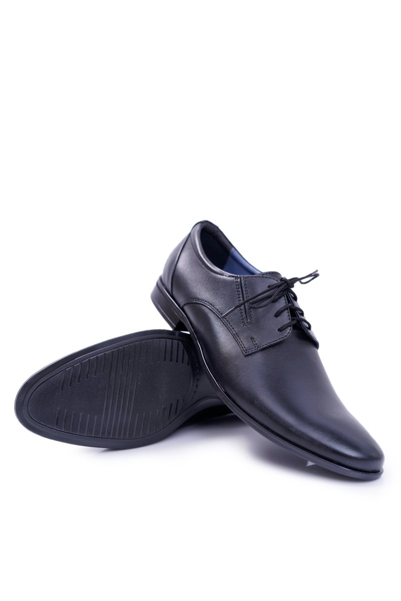 Męskie Półbuty Bednarek Eleganckie Skórzane Wizytowe Czarne Franko