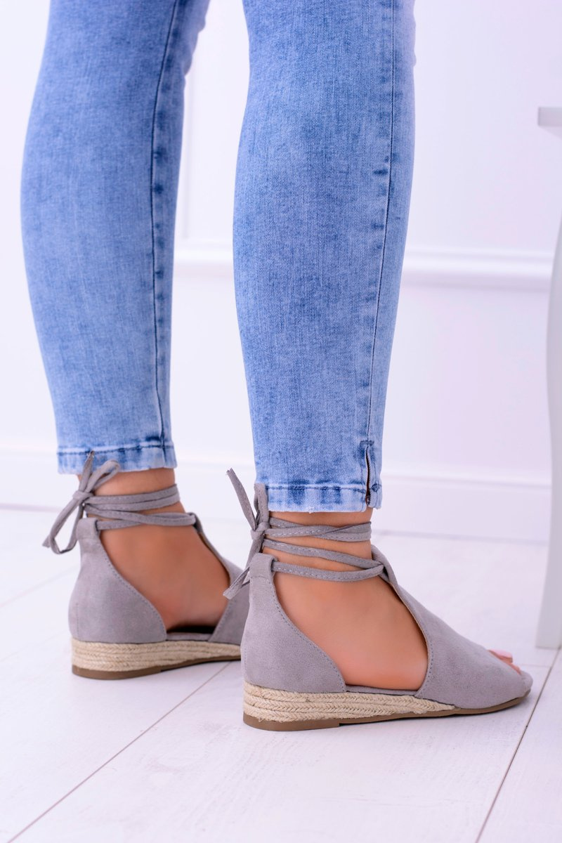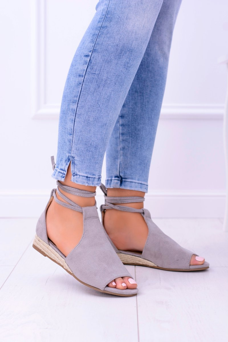 Szare Zamszowe Sandały na Lekkim koturnie Espanoso