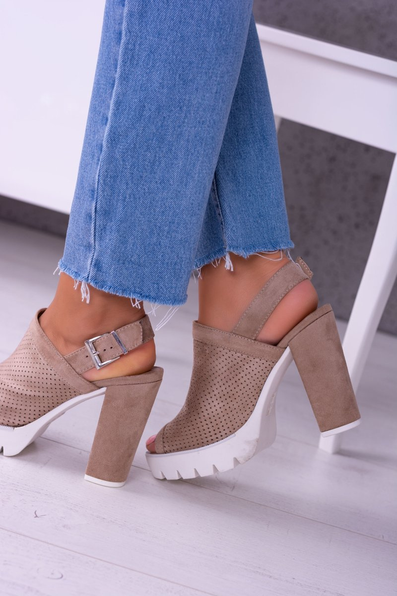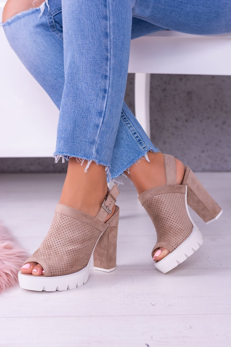 Lu Boo Beżowe Zamszowe Sandały na Słupku Emare