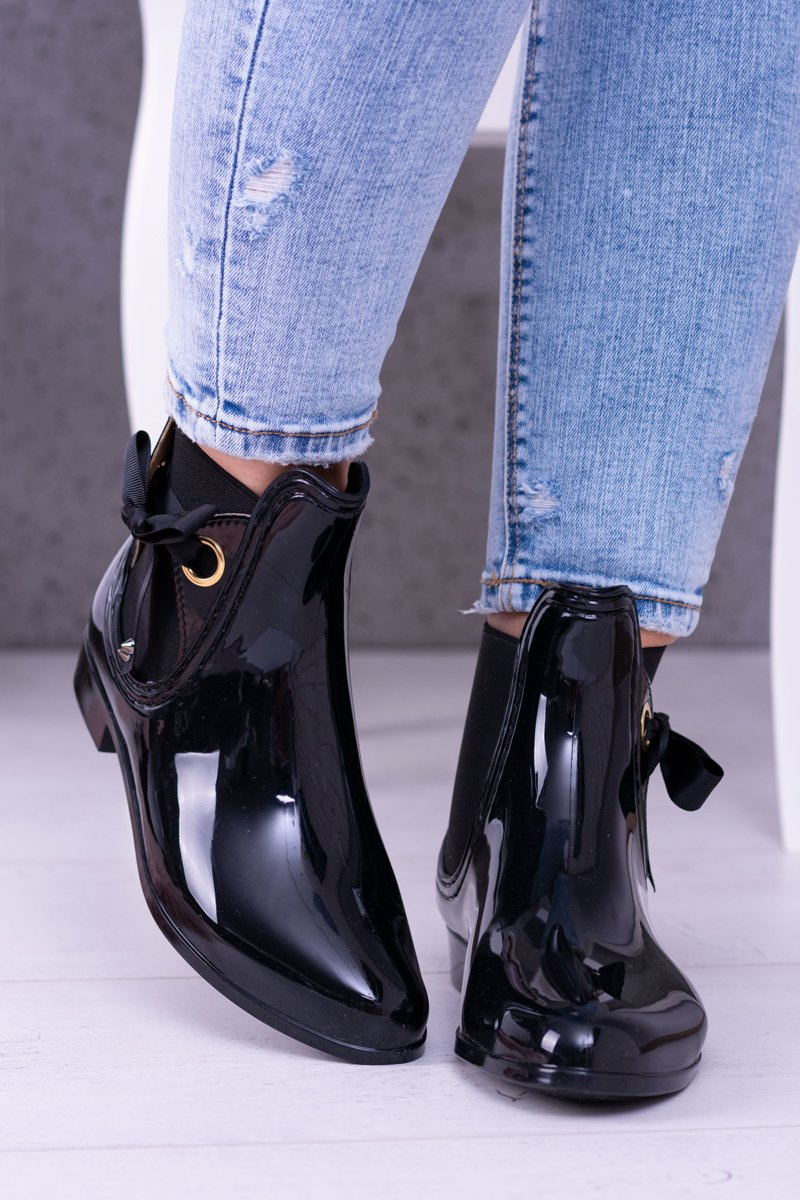 Czarne Lakierowane Damskie Kalosze Sztyblety Someday