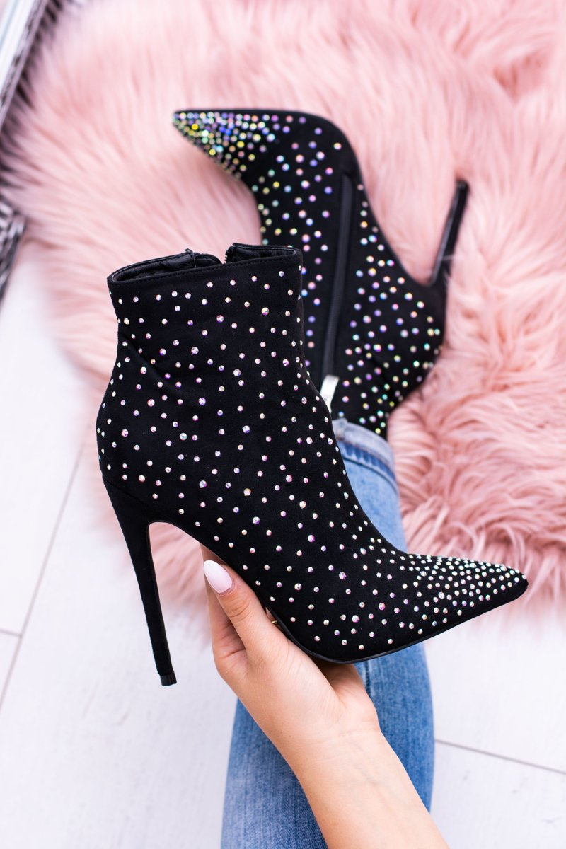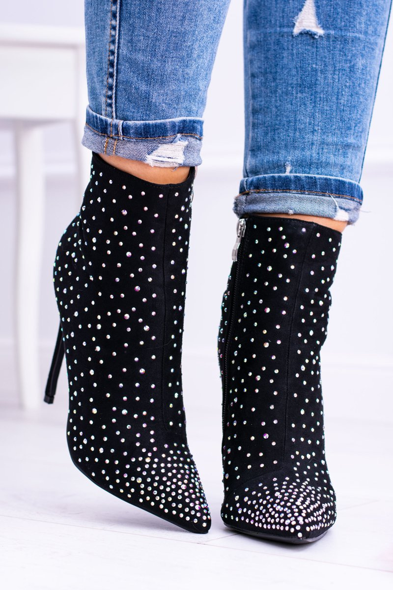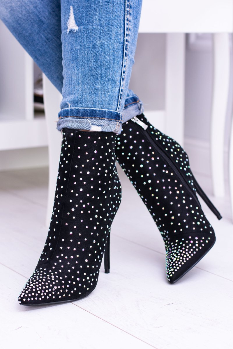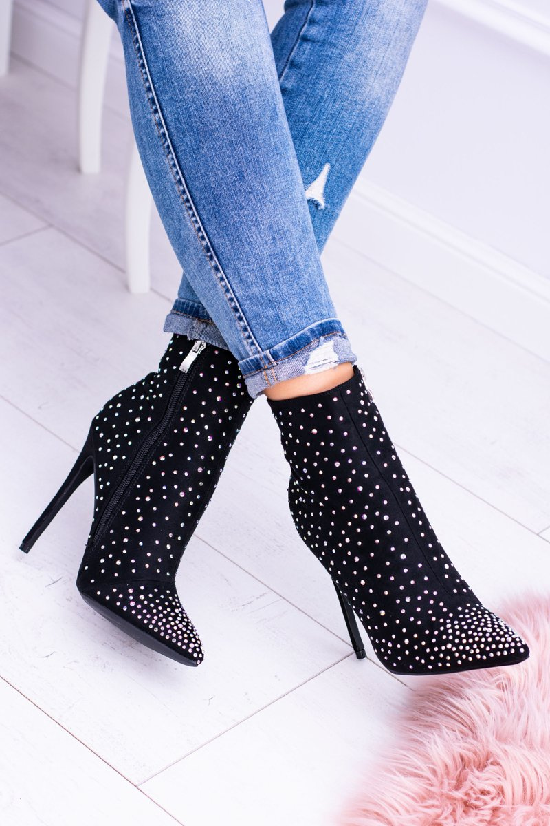 Wysokie botki nie muszą być wielkie i ciężkie. Nasza propozycja to eleganckie, zamszowe buty na szpilce, które będą dopełnieniem jesiennych stylizacji. Botki są niezwykle wygodne. Sprawdzą się do eleganckich stylizacji. Dodatkową ozdobą są cyrkonie na całej powierzchni buta. Nie czekaj dłużej i kup teraz! Przy wyborze rozmiaru prosimy kierować się tabelą rozmiarów.