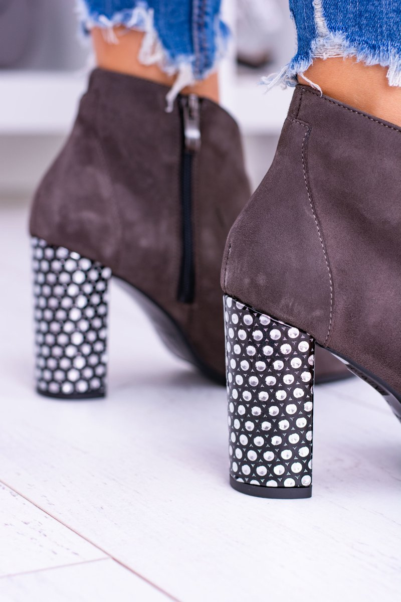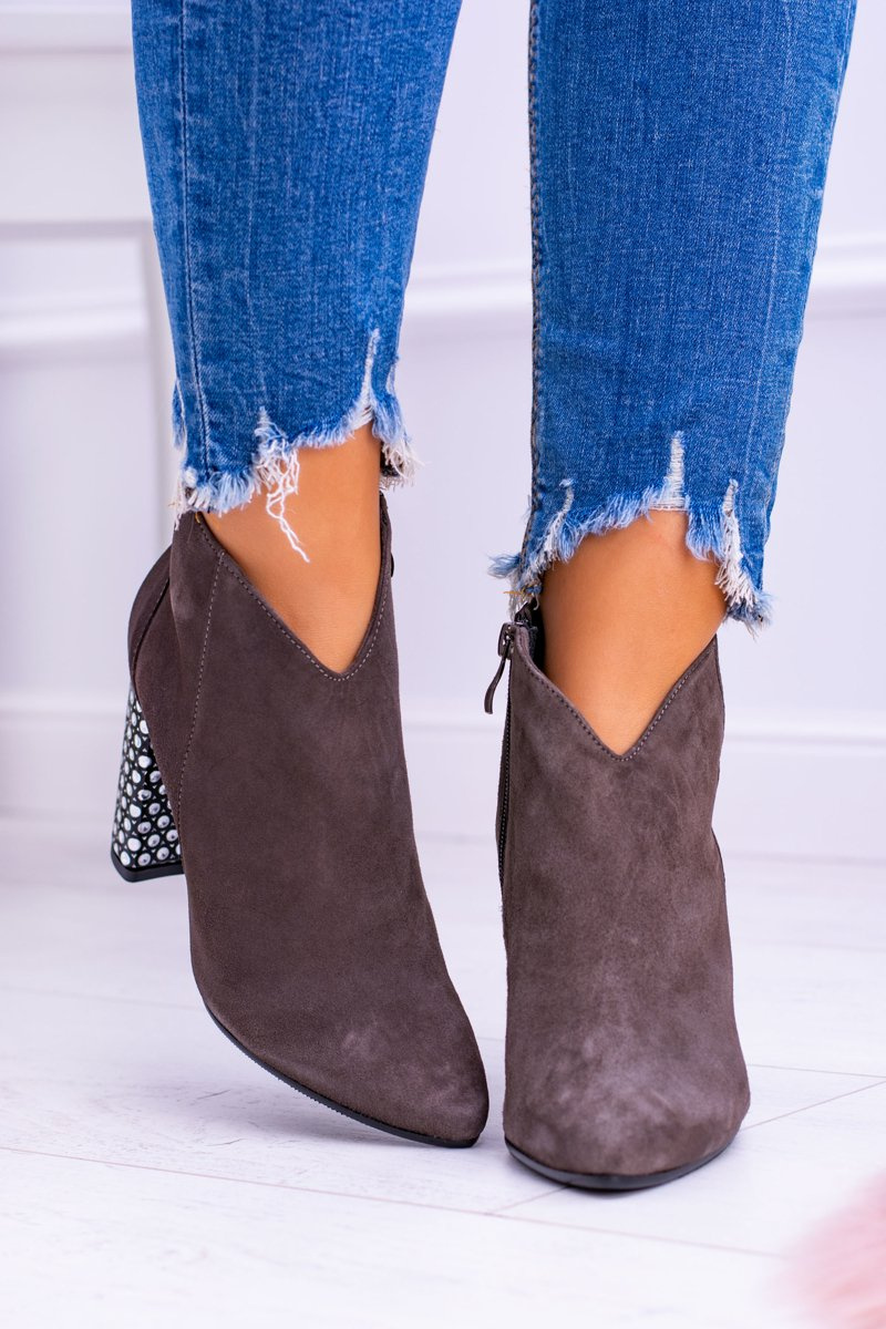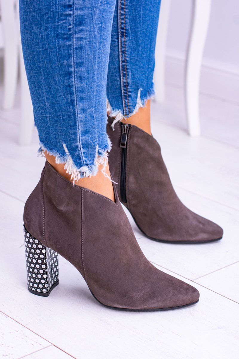 Niezwykle modne botki w tym sezonie! Wyjątkowy styl i eleganckie wykonanie sprawią że są jednym z najbardziej rozchwytywanych modeli tego sezonu! Wierzch wykonany z zamszu, a wkładka ocieplana kocem obuwniczym. Zastosowanie delikatnej wyściółki oraz stabilnego słupka podniesie uczucie komfortu. Klasyczny design i zawsze modny kolor - to coś co musisz mieć! Nie czekaj dłużej i kup teraz w doskonałej cenie!
