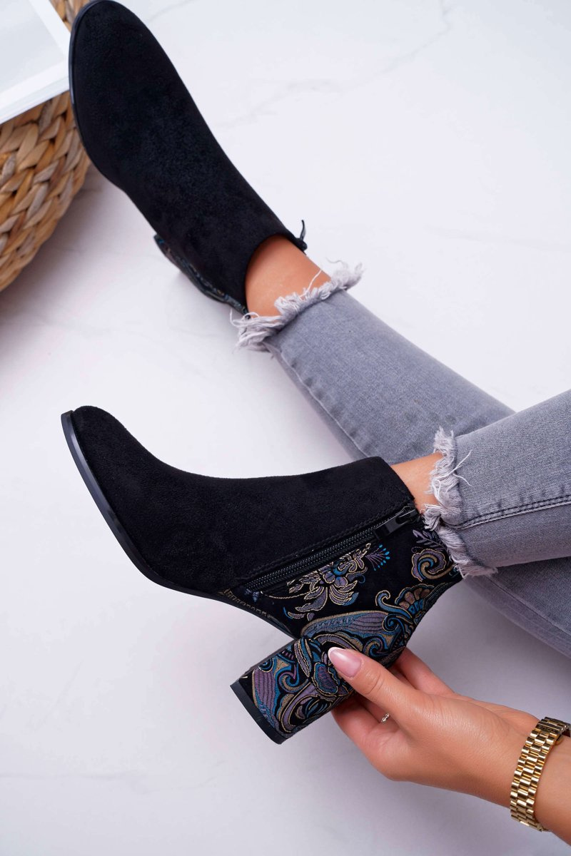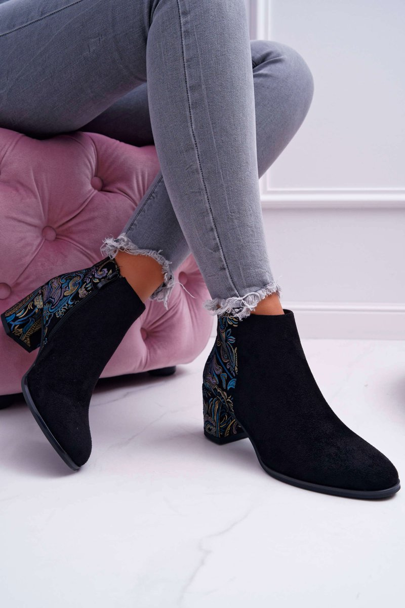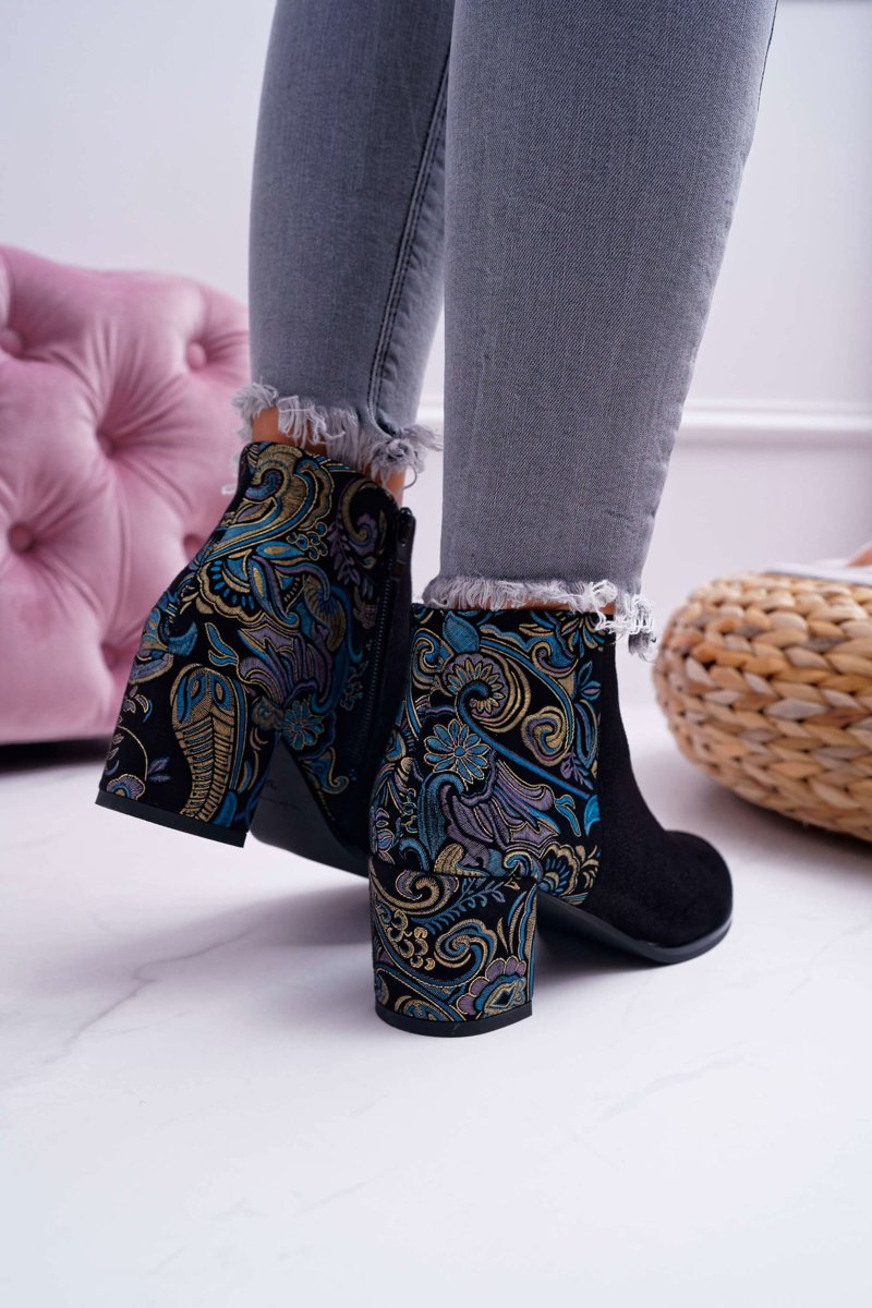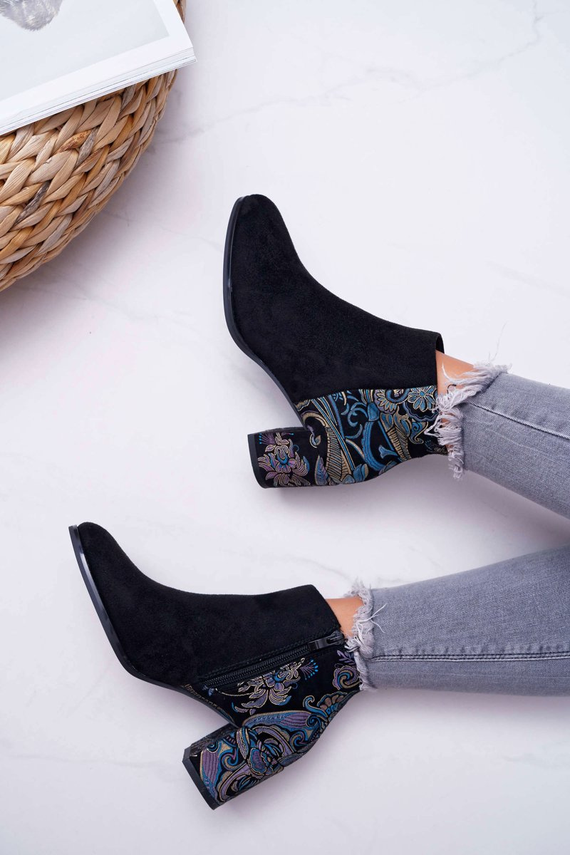 Botki Damskie Na Słupku Sergio Leone W Kwiaty Folk Czarne Eros2