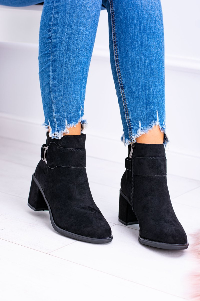 Damskie Czarne Botki Na Słupku Z Klamrą Zamsz Evoret