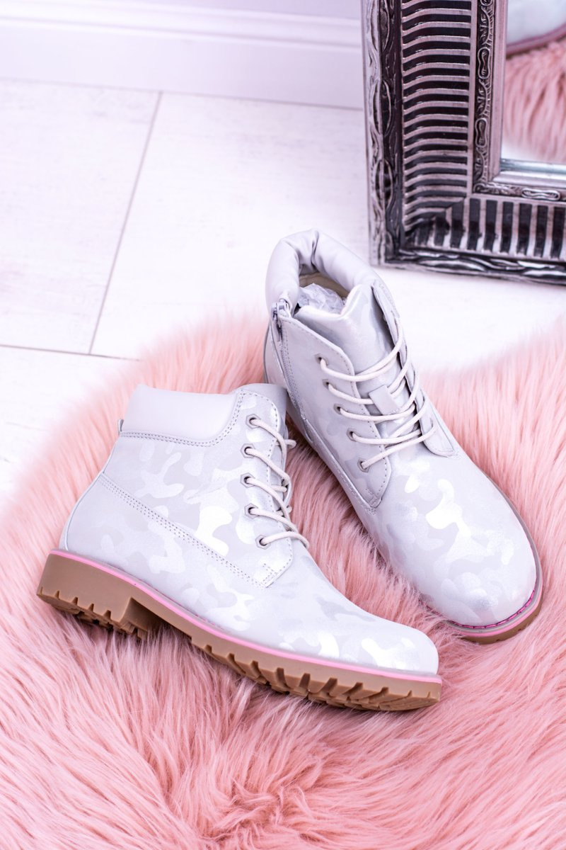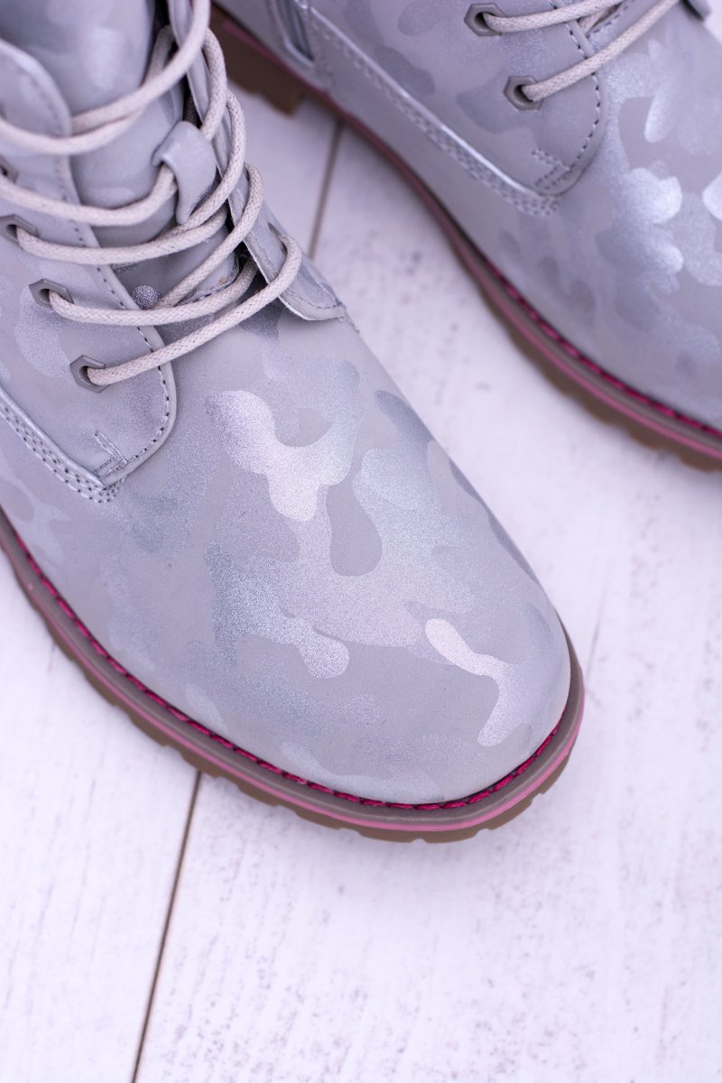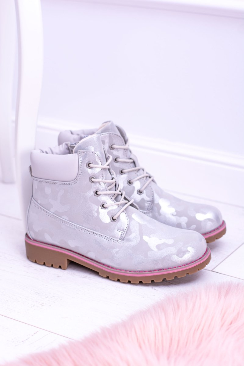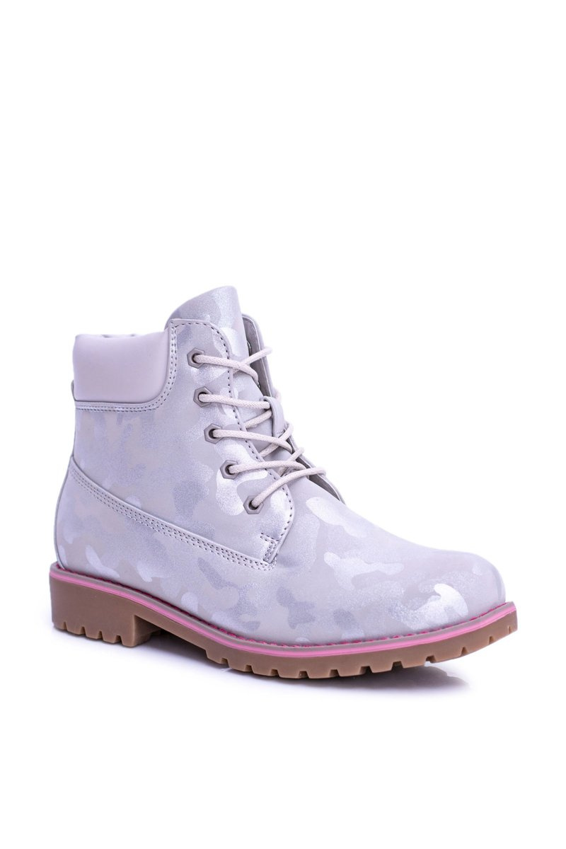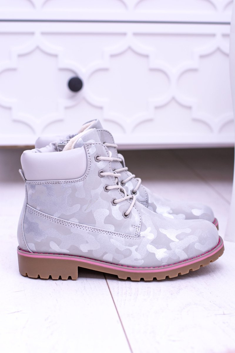 Dziecięce Młodzieżowe Ocieplane Szare Botki Traperki MoroStyle