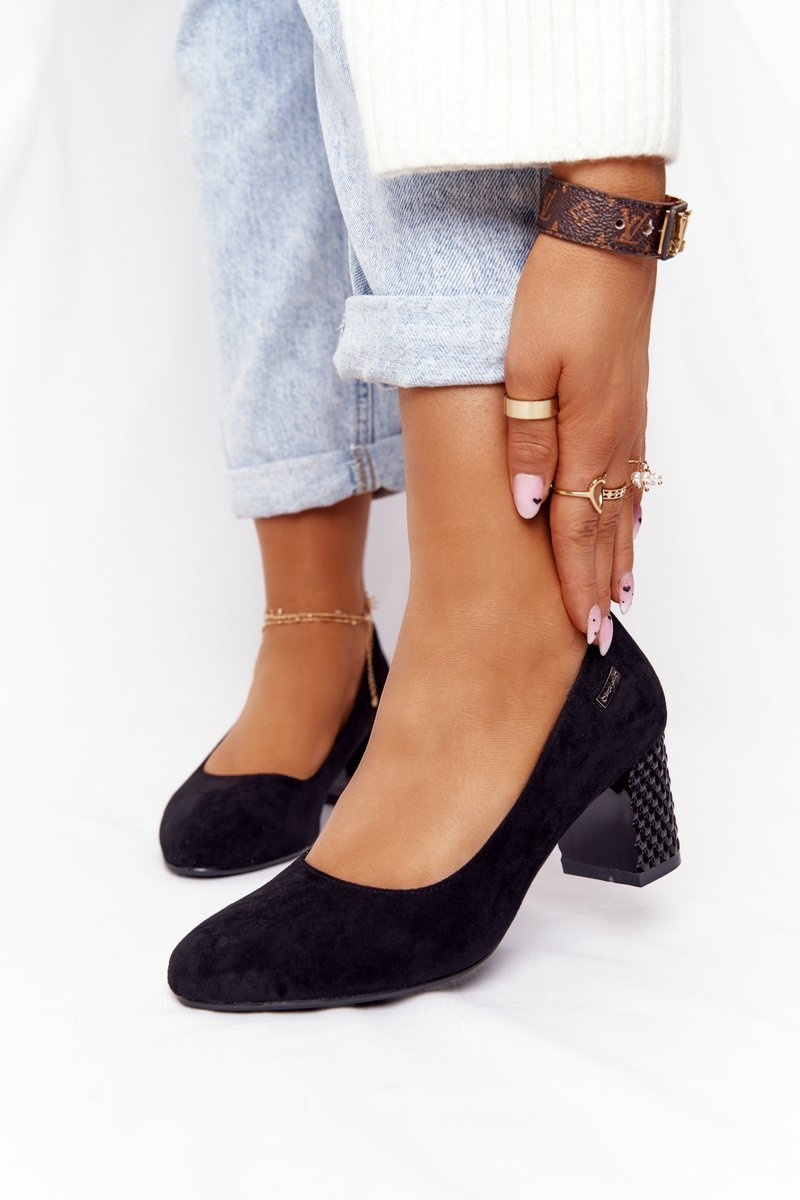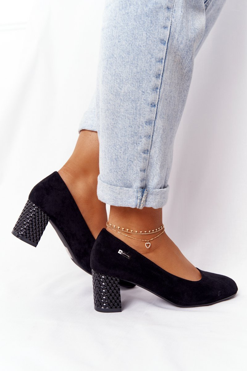 Zamszowe Czółenka Na Karbowanym Słupku Sergio Leone Czarne