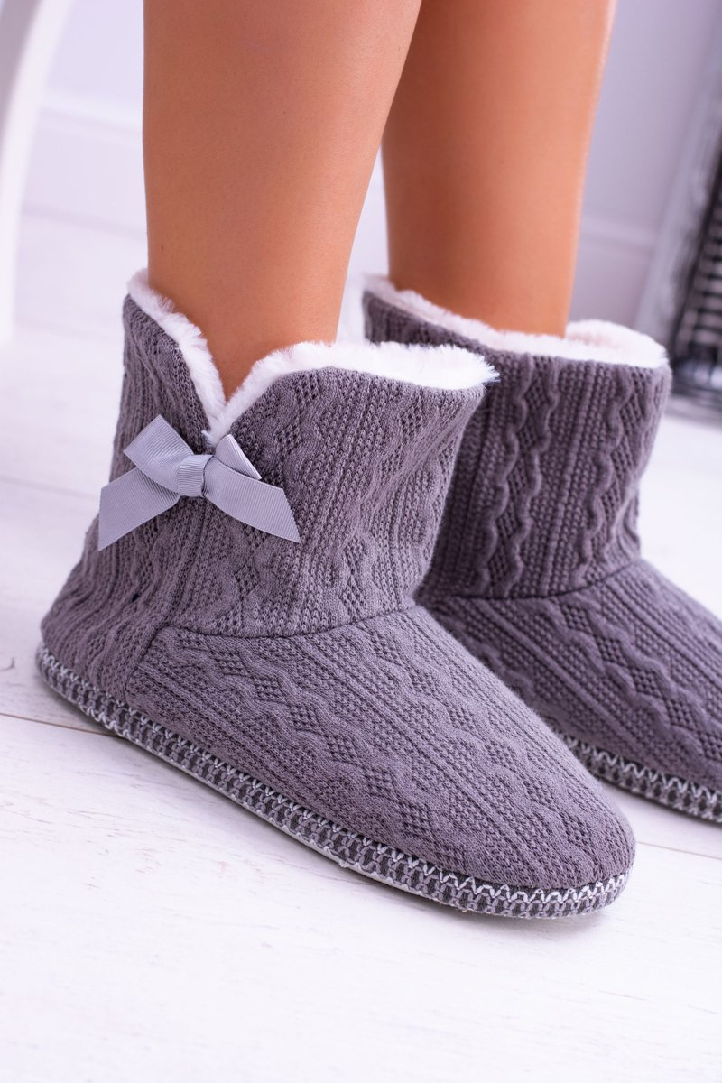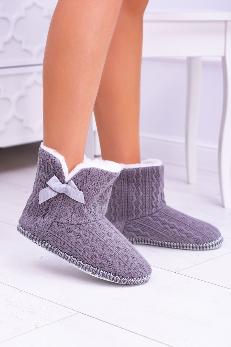 Domowe Szare Damskie Ocieplane Botki Papcie Duffy