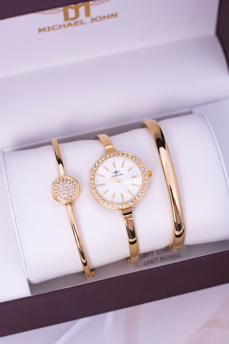 Zestaw Michael John Złoty Zegarek Dwie Bransolety