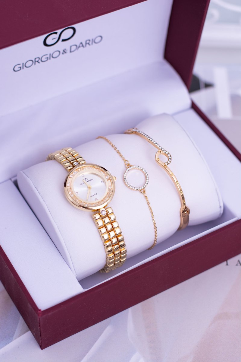 Giorgio Dario Zestaw Złoty Damski Zegarek Dwie Złote Bransolety
