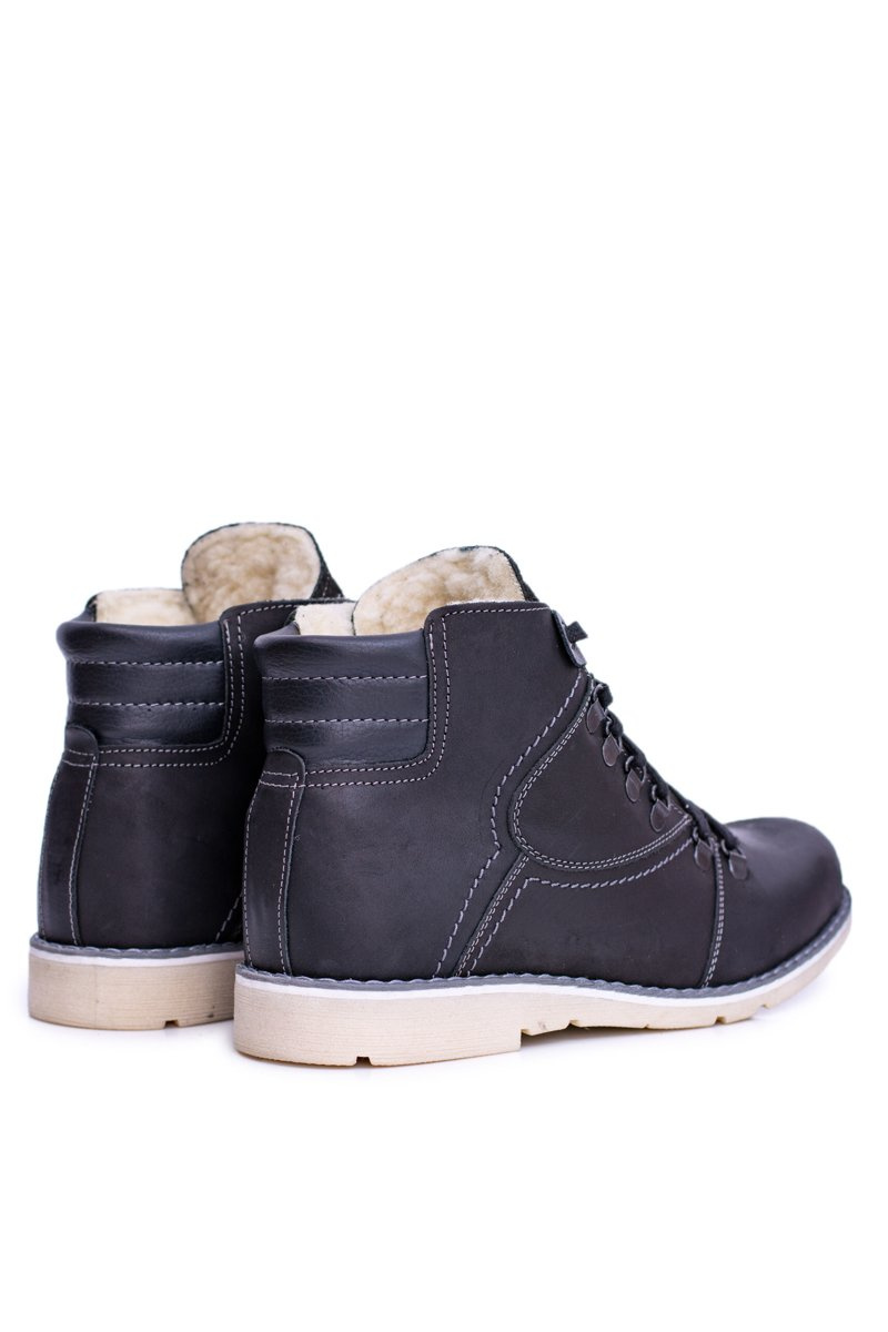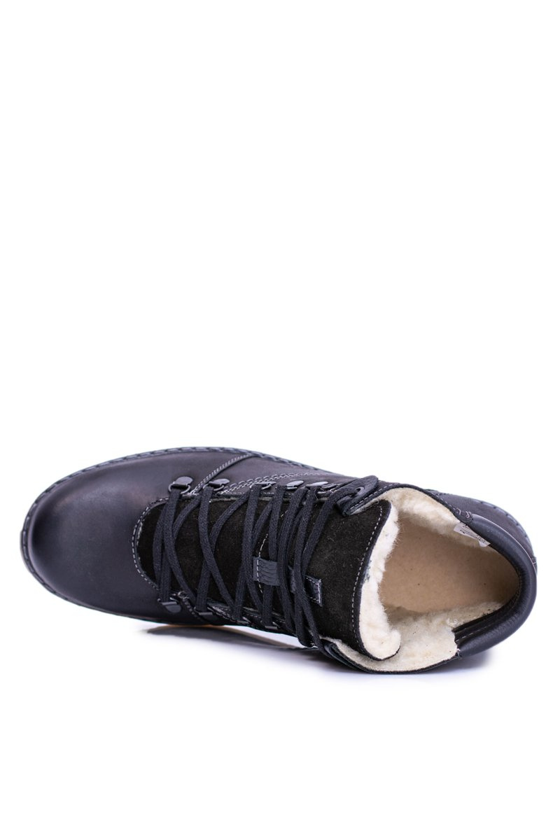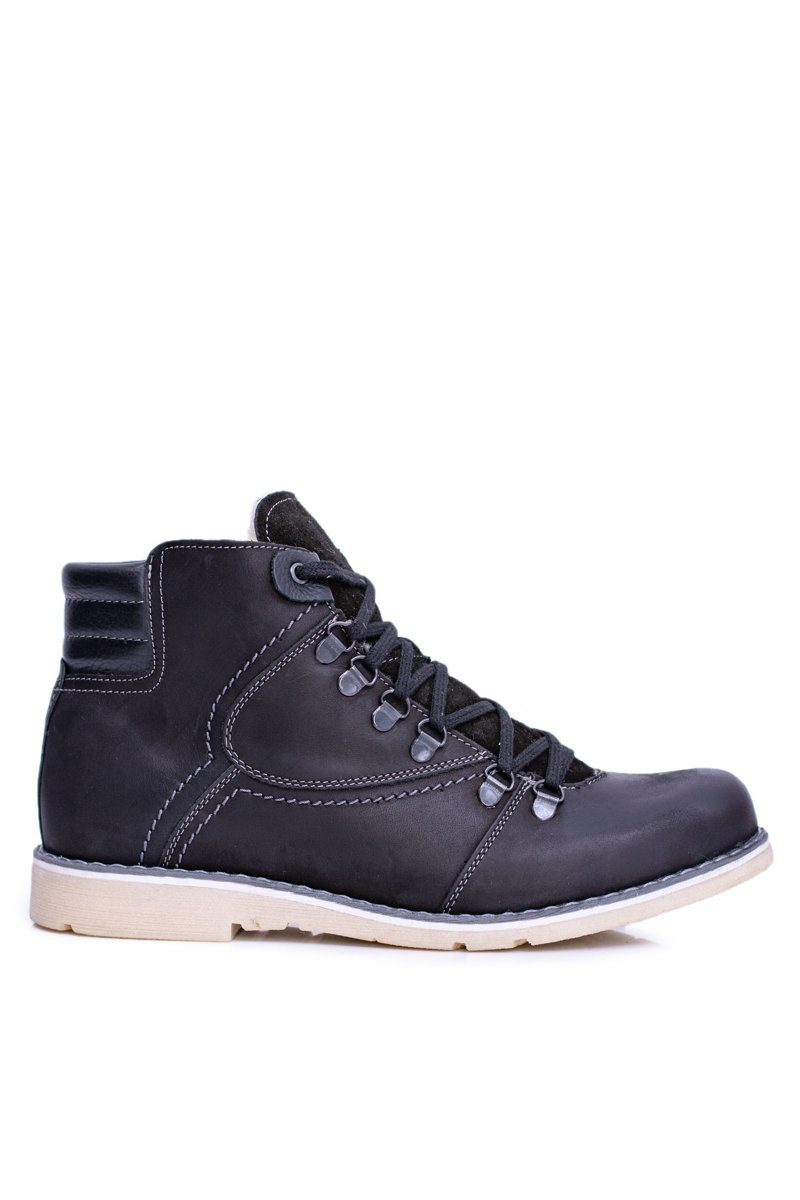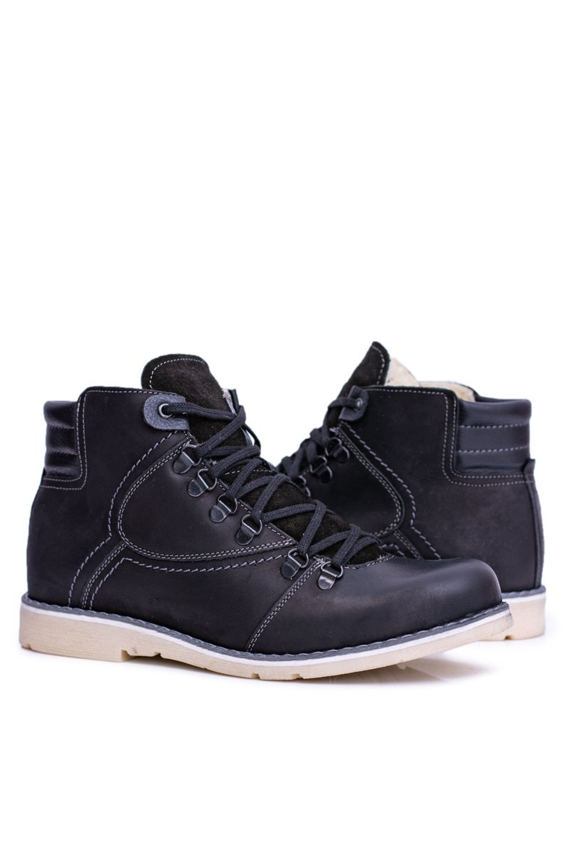 Skórzane Botki Męskie Ocieplane Czarne Komodo 733
