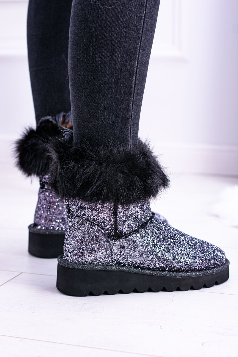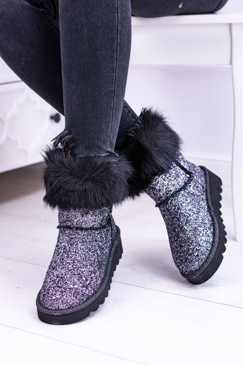 Damskie Botki Śniegowce Wysokie Z Futerkiem i Brokatem Fourrure