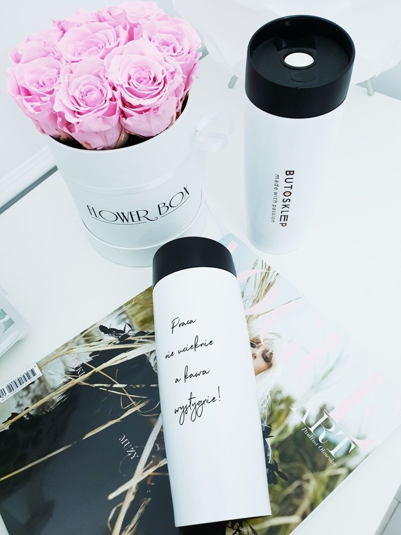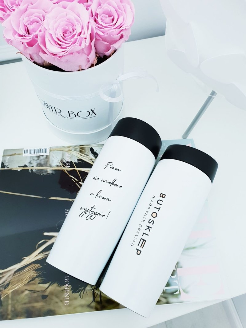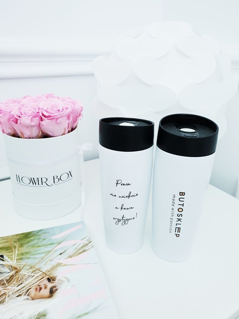 Kubek termiczny o pojemności 350 ml, z jednej strony logo z drugiej zabawny, ale prawdziwy tekst :) Podwójne ścianki ze stali nierdzewnej z próżnią między ściankami, dzięki czemu zachowuje funkcje termosu i długo utrzymuje temperaturę nie oddając jej na zewnątrz, plastikowa pokrywa, szczelne zamknięcie, funkcja push open / close, nie wymaga obsługi oburącz, matowe wykończenie. Wymiary: 21 x 6,5 cm Waga: 250 g