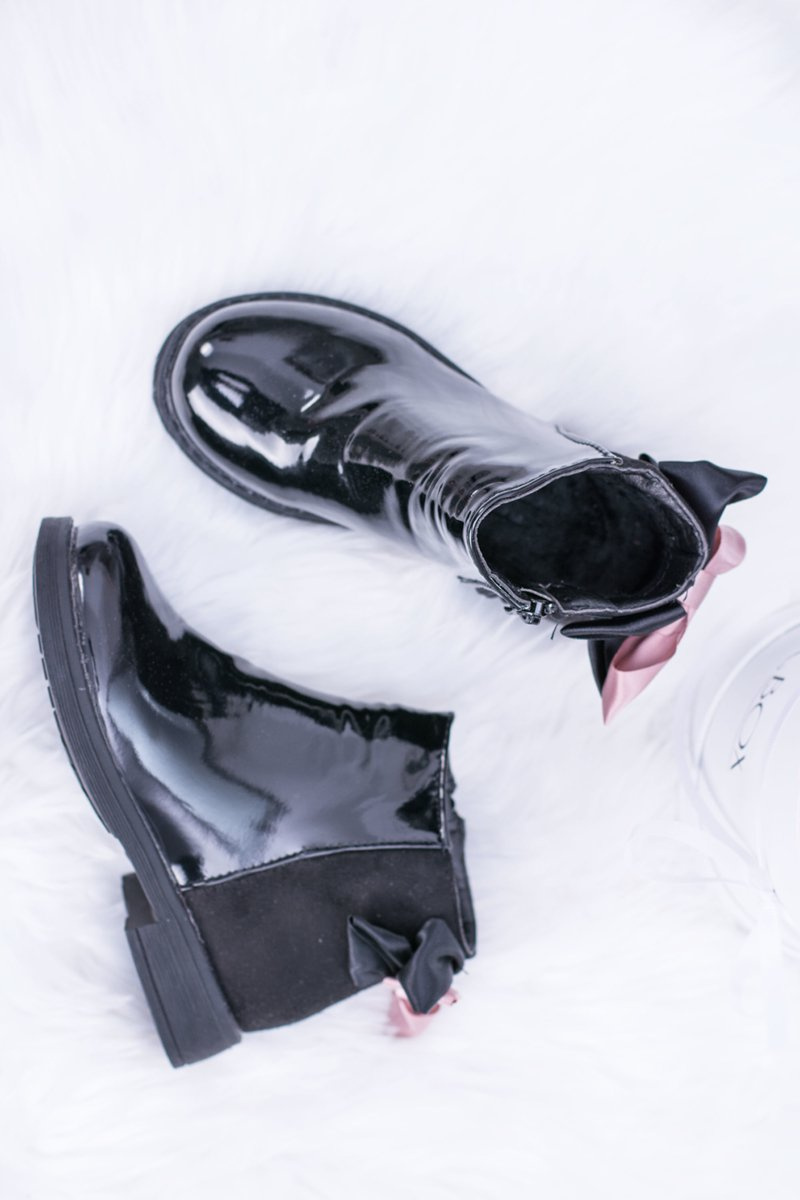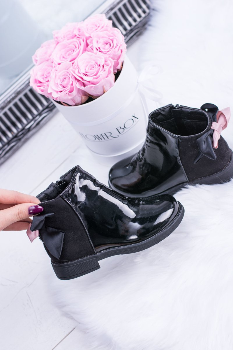 Czarne Dziecięce Botki Ocieplane Z Suwakiem Lakierowane Small Diana