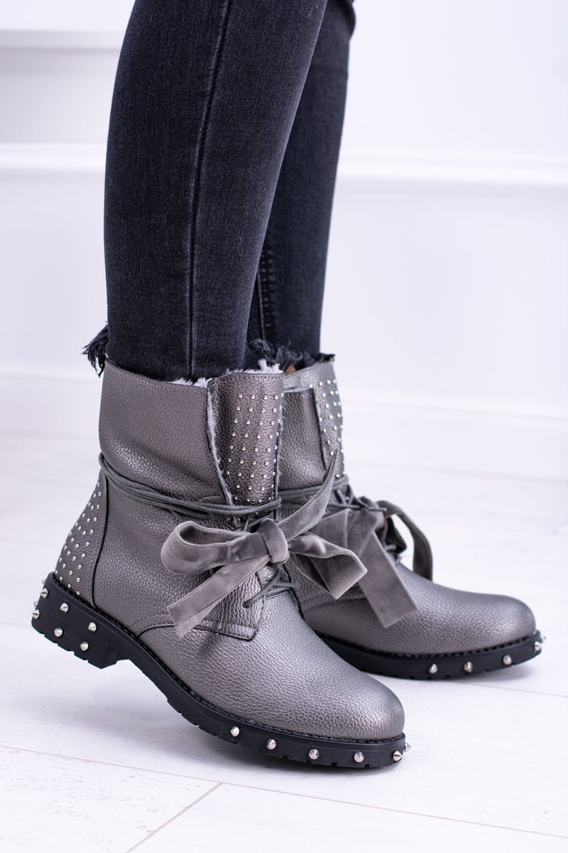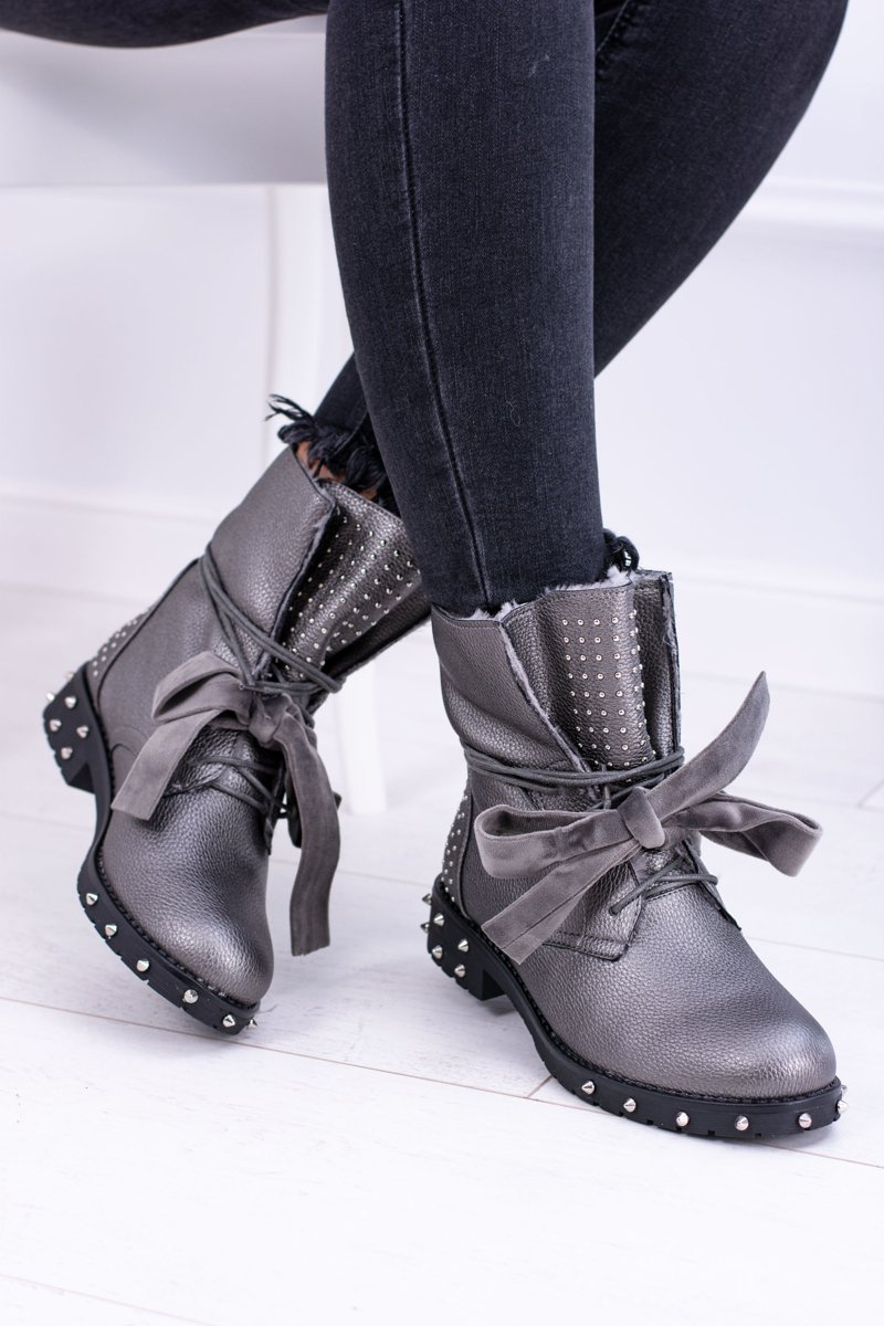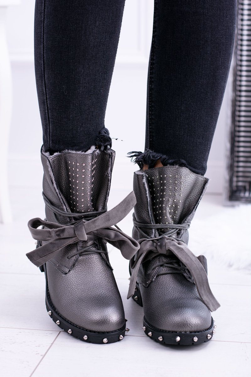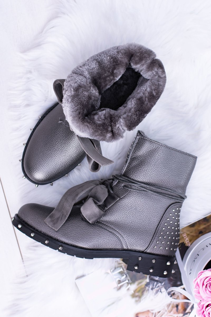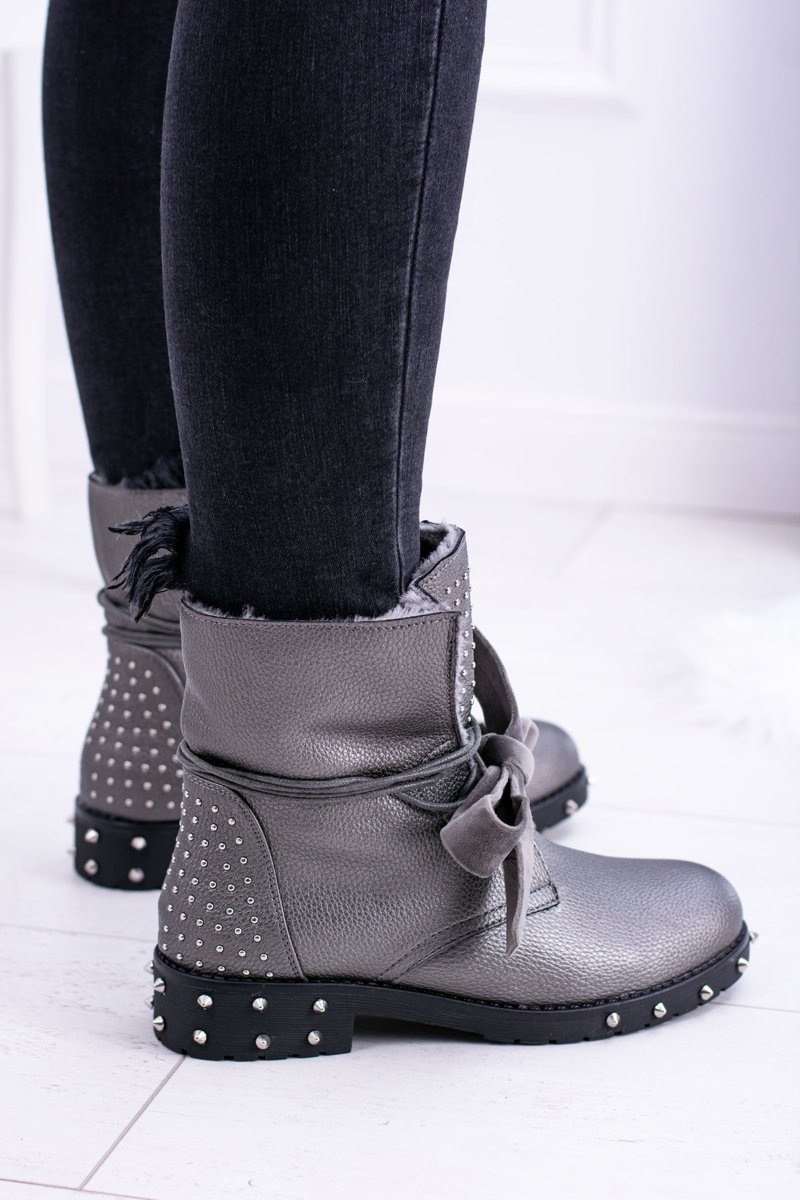 Damskie Botki Ocieplane Z Kolcami i Dżetami Srebrne Neso