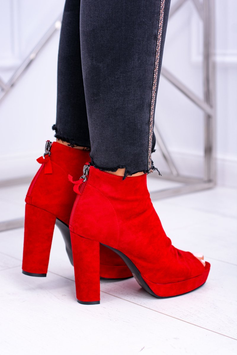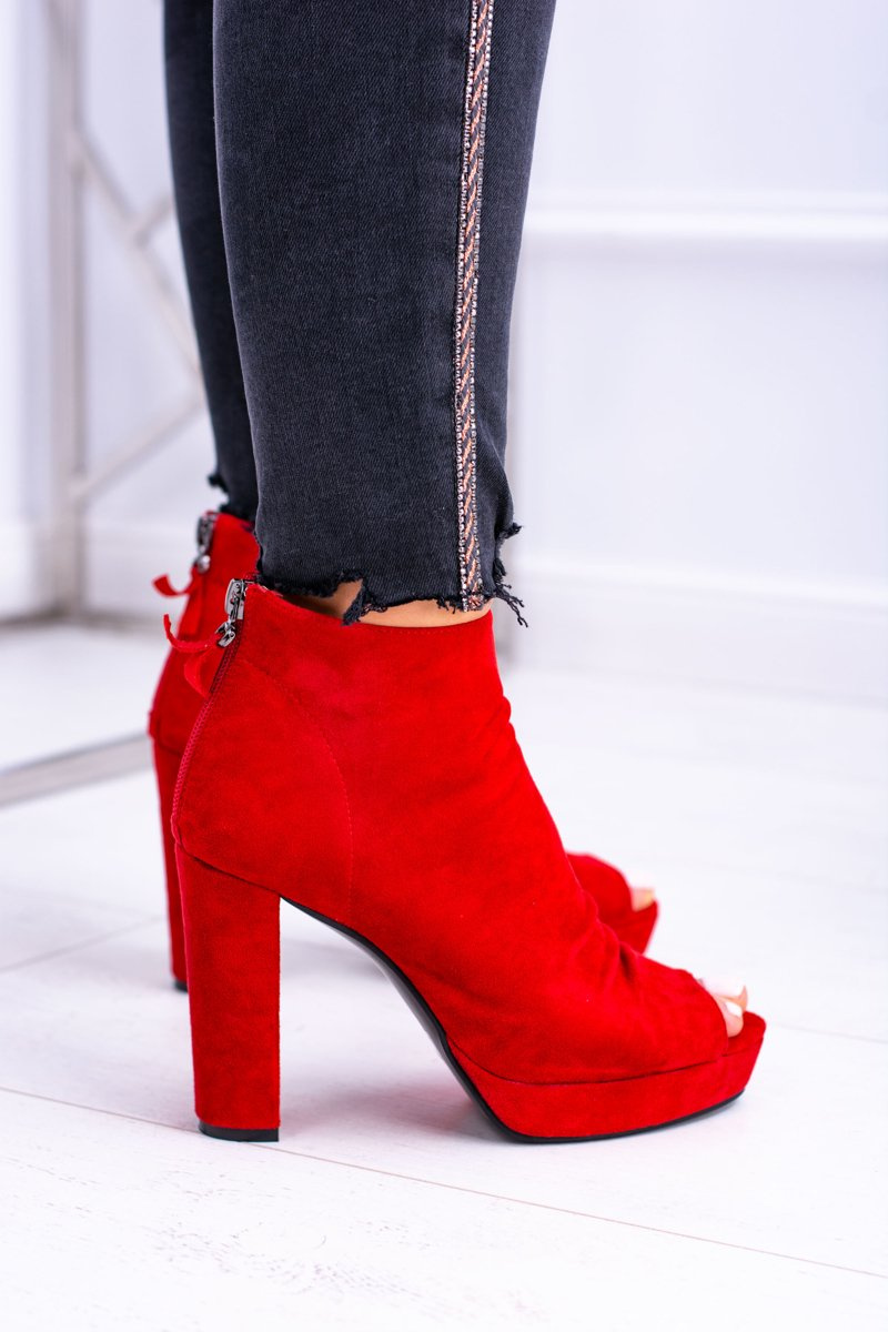 Damskie Botki Na Słupku Odkryte Palce Czerwone Temira