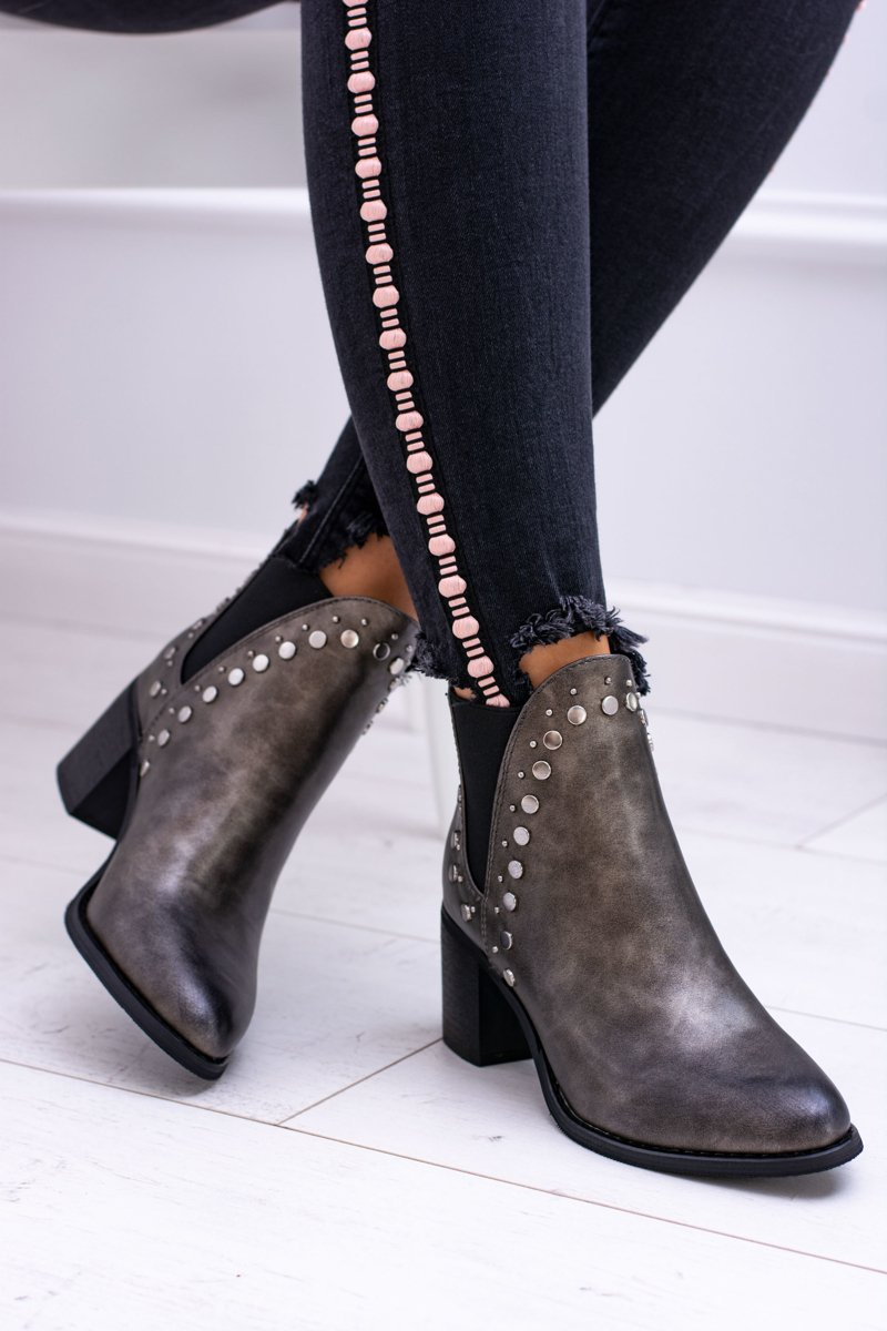 Podczas chłodniejszych dni warto zwrócić szczególną uwagę na buty. Dzięki nim podkreślimy nasze stylizacje a dodatkowo dadzą nam maksimum komfortu w każdej sytuacji. Klasyczne botki z gumkami na boku. Cholewka zdobiona małymi nitami. Wnętrze delikatnie ocieplone futerkiem. Koniecznie sprawdź całą naszą kolekcję sztybletów w super cenach!